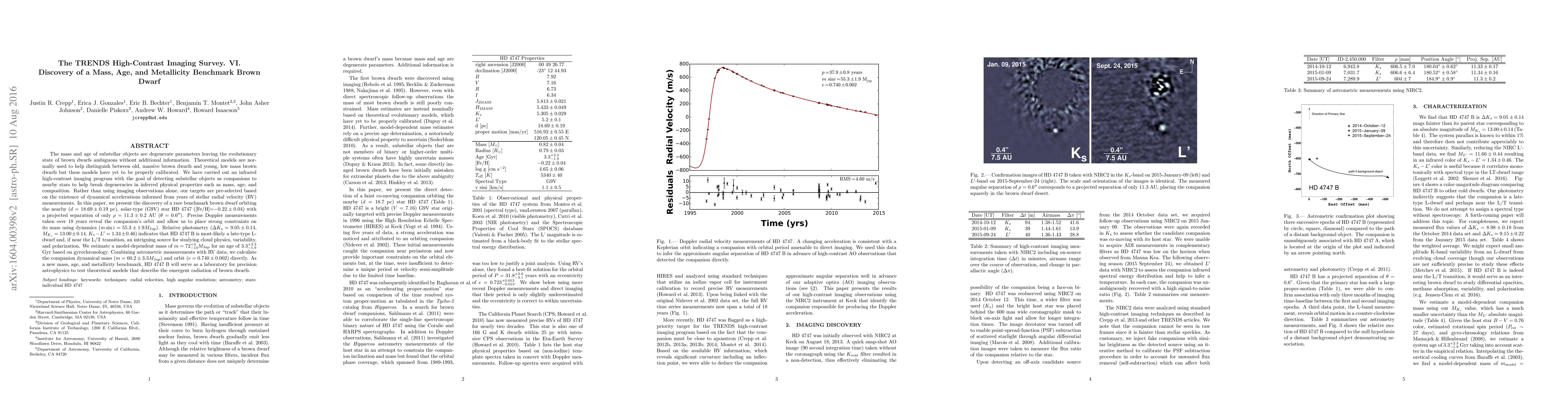 This paper reports the discovery of a benchmark brown dwarf, HD 4747 B, orbiting the nearby G9V star HD 4747. The precise mass and age of the brown dwarf, determined through a combination of high-contrast imaging and long-term radial velocity measurements, provide a valuable reference for calibrating theoretical models of brown dwarf evolution.