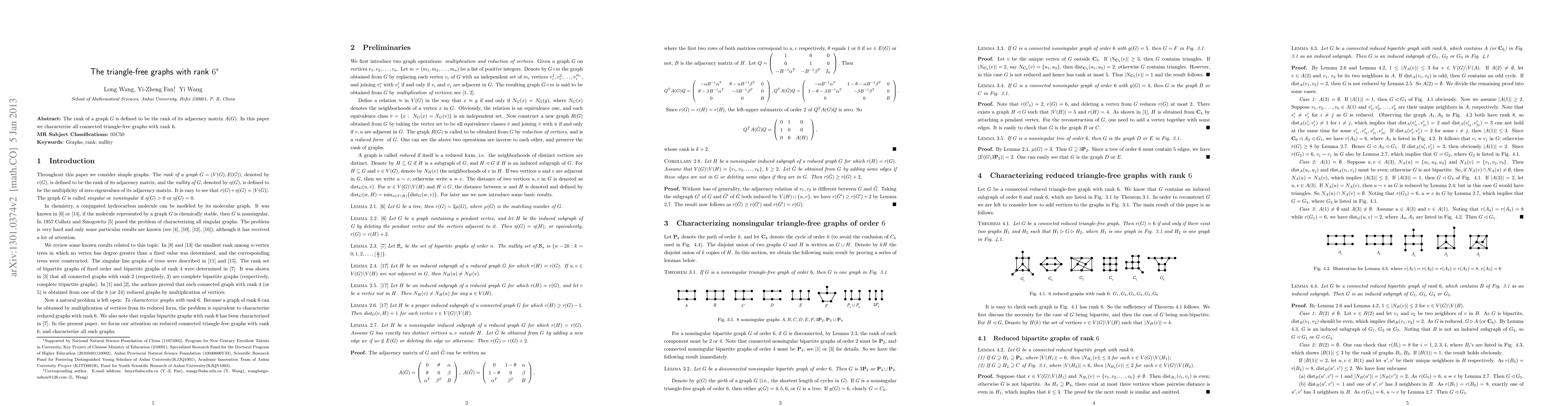 Summary: This paper identifies and characterizes all connected triangle-free graphs whose adjacency matrix has a rank of 6, providing a detailed analysis of their structural properties.