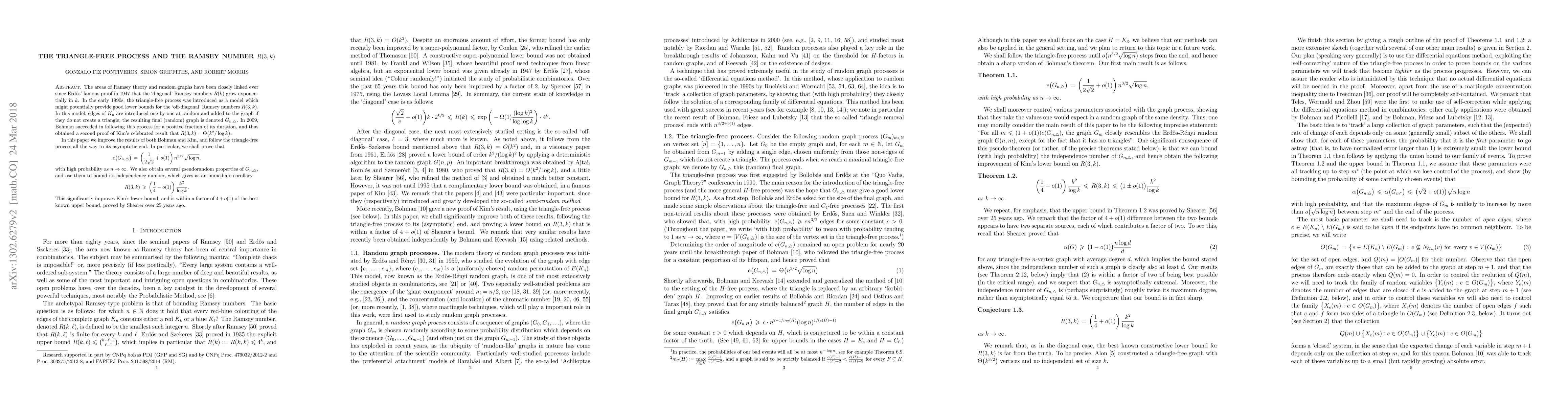 This paper improves the understanding of the triangle-free process, proving that the edge count of the resulting graph $G_{n,\triangle}$ is asymptotically $\left( \frac{1}{2\sqrt{2}} + o(1) \right) n^{3/2} \sqrt{\log n}$. This leads to a significantly improved lower bound for the Ramsey number $R(3,k)$, showing $R(3,k) \ge \left( \frac{1}{4} - o(1) \right) \frac{k^2}{\log k}$.