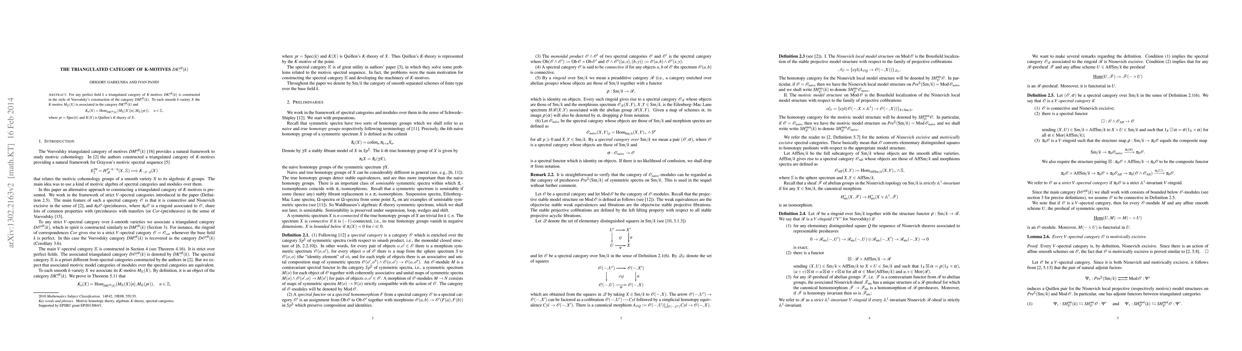 This paper constructs a triangulated category of K-motives DK_(k) for any perfect field k, modeled after Voevodsky's category DM_(k). It associates K-motives to smooth k-varieties and demonstrates a relationship between K-theory and DK_(k).