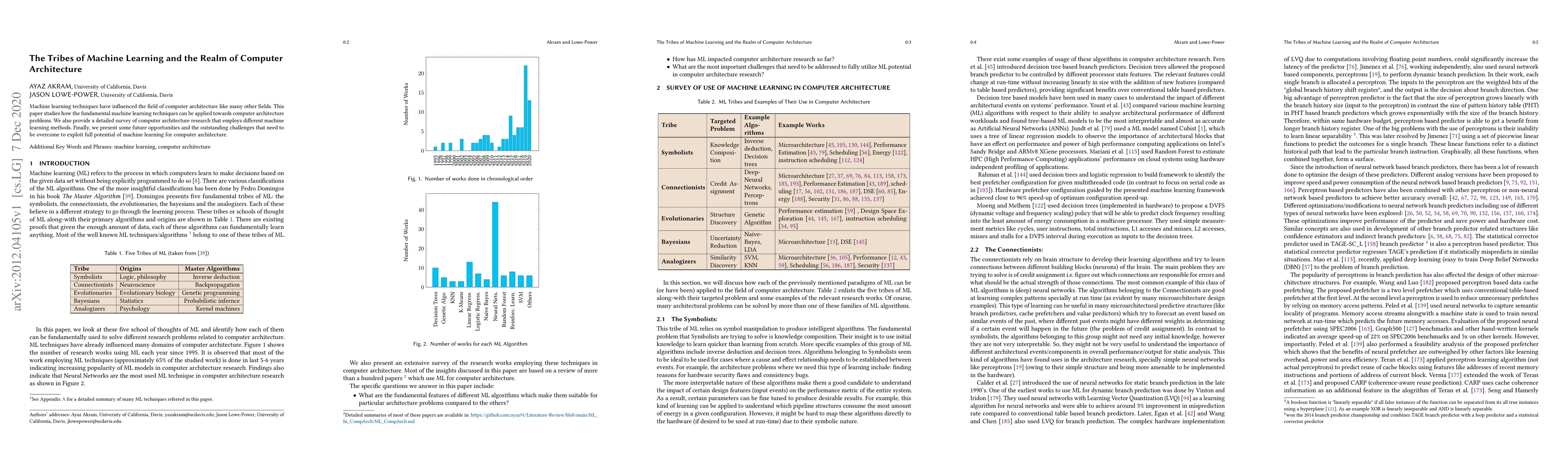 This paper surveys the application of fundamental machine learning techniques to computer architecture problems, highlighting current research and future opportunities, while also addressing the challenges that need to be addressed to fully leverage machine learning in this domain.