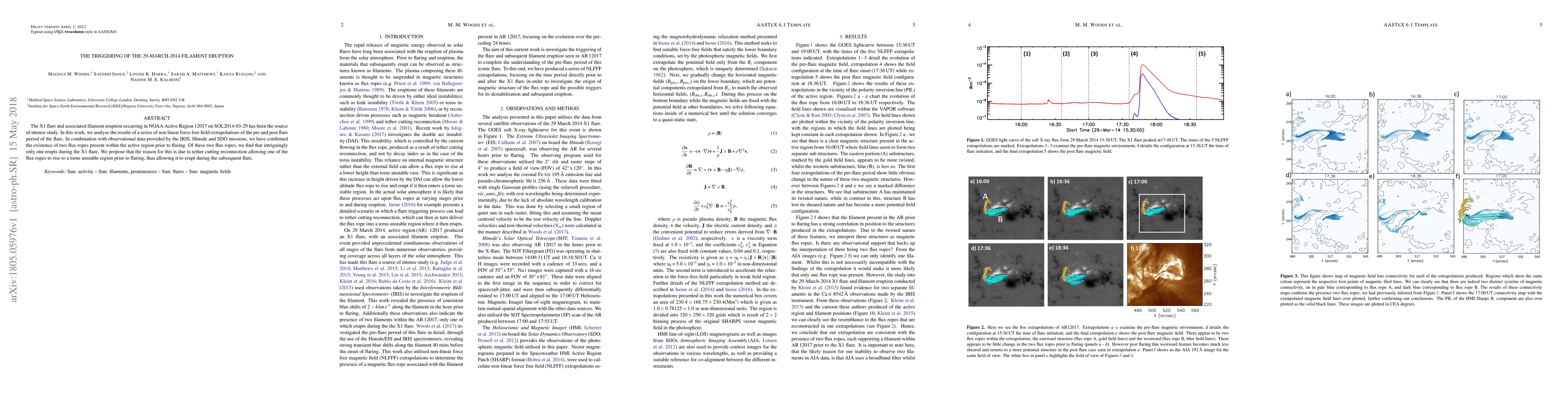 The X1 flare and associated filament eruption occurring in NOAA Active Region 12017 on SOL2014-03-29 has been the source of intense study. In this work, we analyse the results of a series of non linear force free field extrapolations of the pre and post flare period of the flare. In combination with observational data provided by the IRIS, Hinode and SDO missions, we have confirmed the existence of two flux ropes present within the active region prior to flaring. Of these two flux ropes, we find that intriguingly only one erupts during the X1 flare. We propose that the reason for this is due to tether cutting reconnection allowing one of the flux ropes to rise to a torus unstable region prior to flaring, thus allowing it to erupt during the subsequent flare.