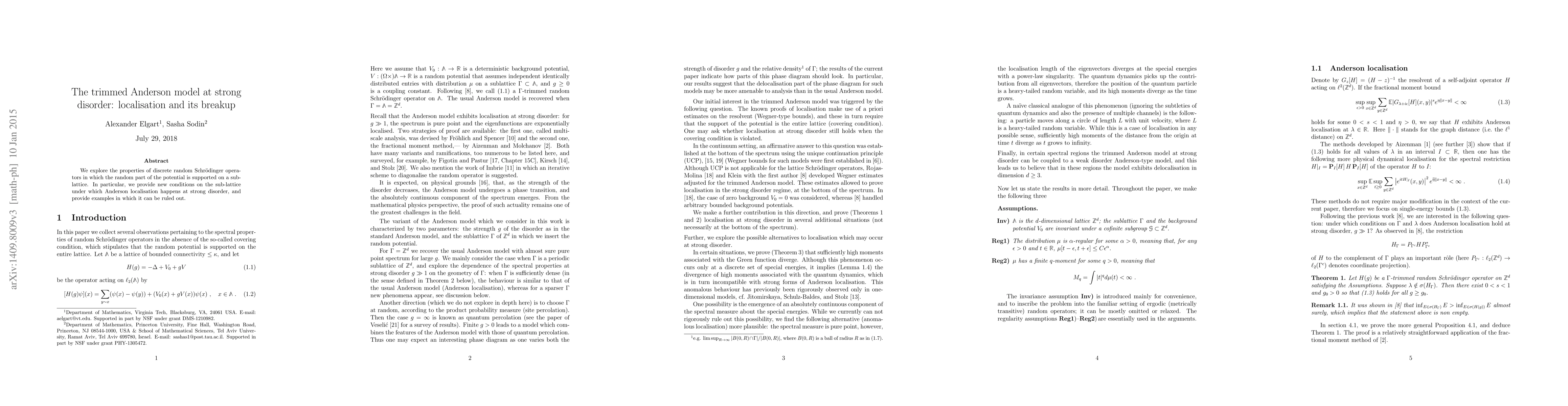 Summary: This paper investigates the localization properties of discrete random Schrödinger operators with potentials supported on sub-lattices, establishing new conditions for Anderson localization under strong disorder and providing examples where localization is not possible.