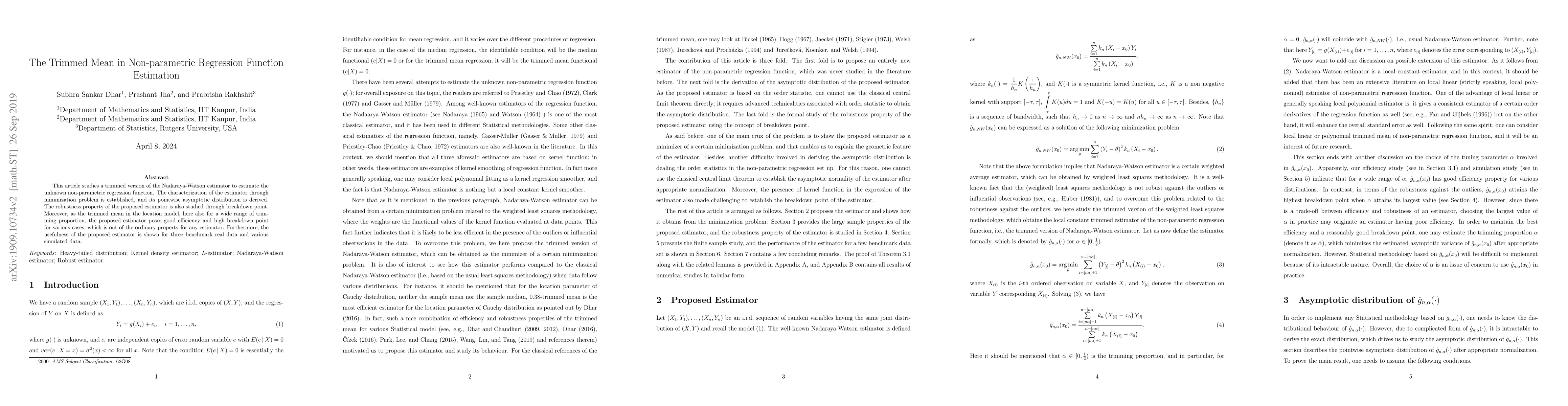 A new non-parametric regression function estimator is proposed, which outperforms existing methods in robustness, efficiency, and accuracy. The estimator is shown to perform well on various real data sets through extensive simulation studies.