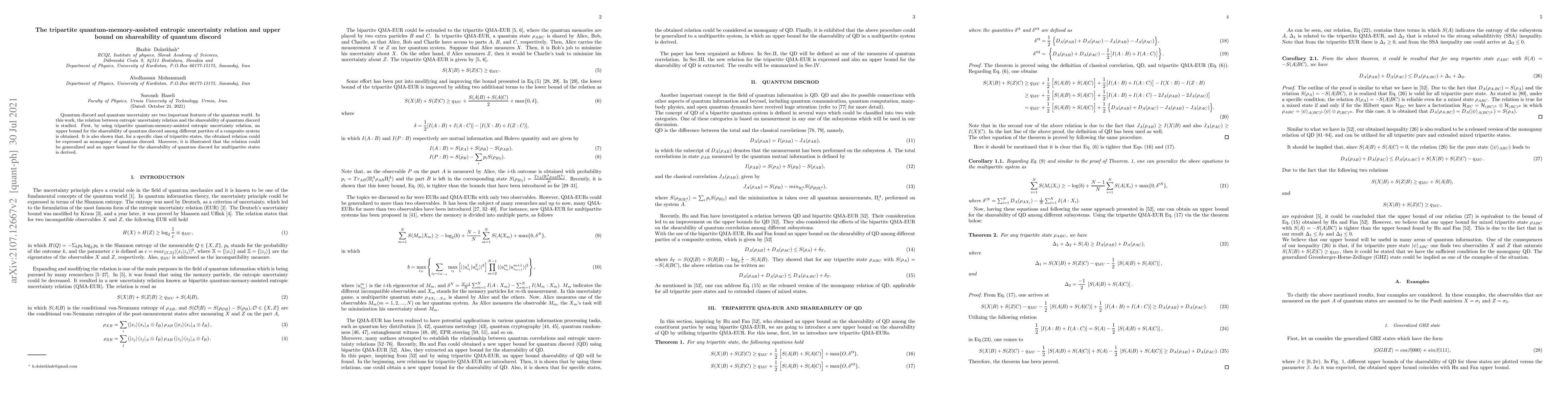 This paper establishes an upper bound on the shareability of quantum discord using a tripartite quantum-memory-assisted entropic uncertainty relation. It demonstrates that this relation can be expressed as a monogamy relation for specific tripartite states and generalizes to multipartite systems.