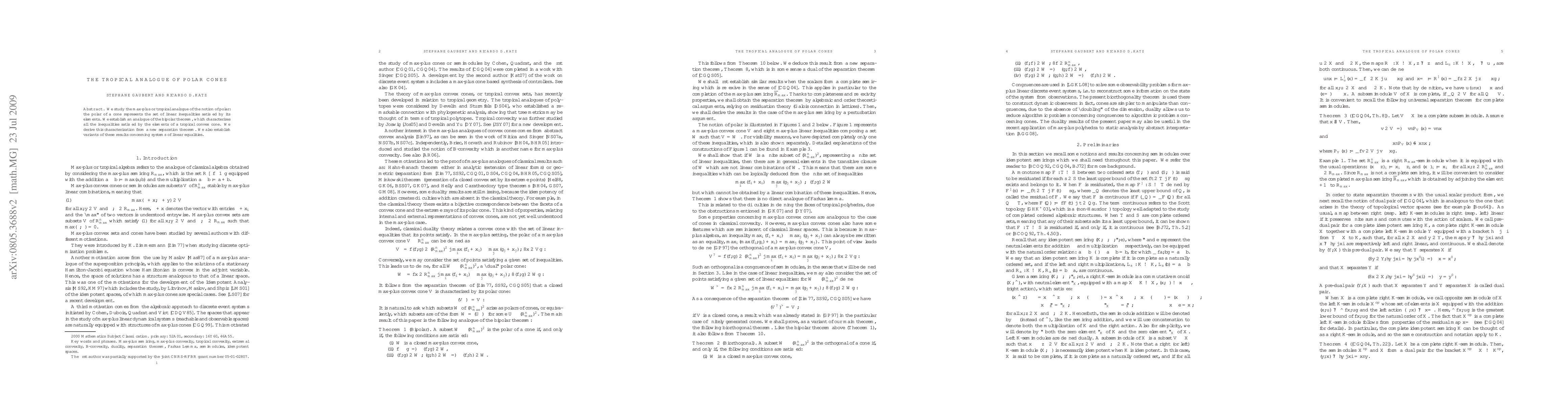 The paper introduces a separation theorem to characterize inequalities in tropical convex cones, extending the bipolar theorem to the tropical setting.