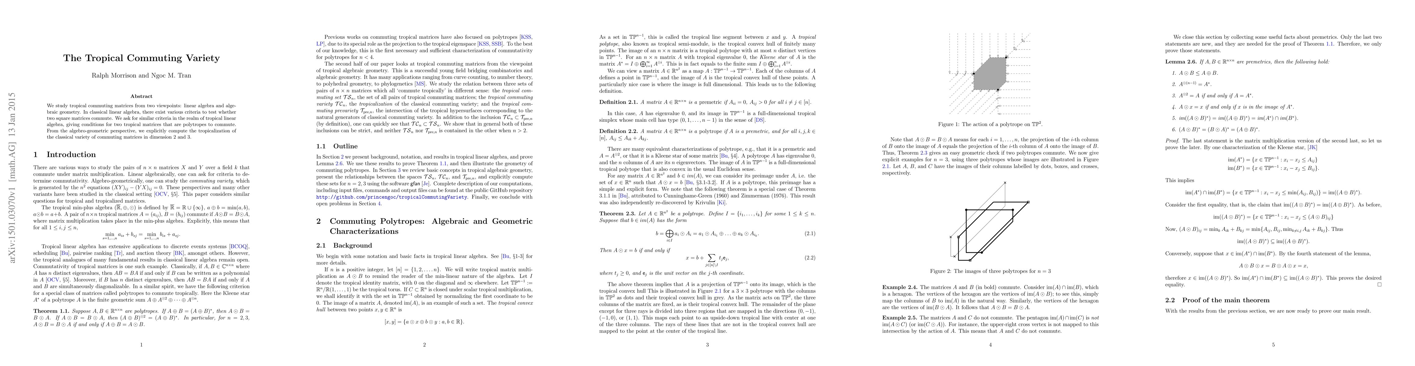 This paper explores tropical commuting matrices through linear algebra and algebraic geometry, providing conditions for tropical matrices to commute and computing the tropicalization of the commuting matrix variety in dimensions 2 and 3.