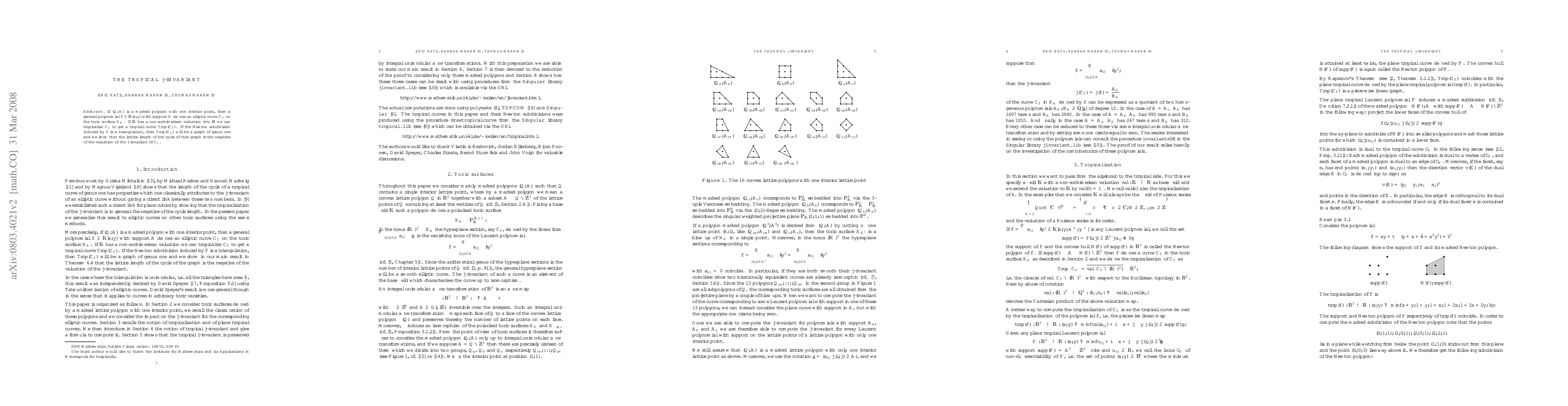 If (Q,A) is a marked polygon with one interior point, then a general polynomial f in K[x,y] with support A defines an elliptic curve C on the toric surface X_A. If K has a non-archimedean valuation into the real numbers we can tropicalize C to get a tropical curve Trop(C). If the Newton subdivision induced by f is a triangulation, then Trop(C) will be a graph of genus one and we show that the lattice length of the cycle of that graph is the negative of the valuation of the j-invariant of C.