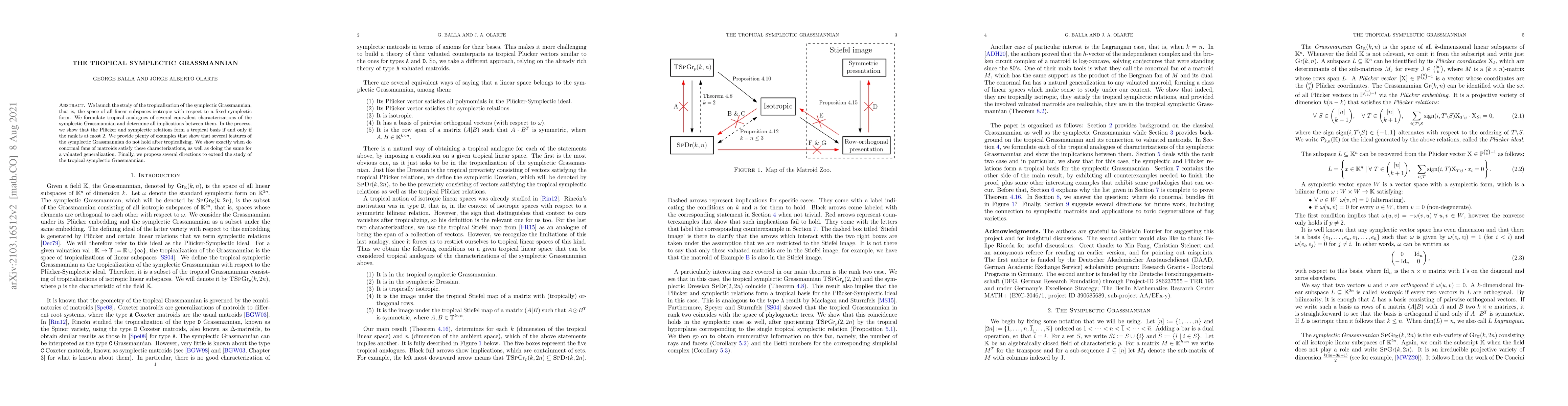 This paper investigates the tropicalization of the symplectic Grassmannian, identifying tropical analogues of its characterizations and determining their implications. It reveals that tropical Plücker and symplectic relations form a basis only for ranks up to 2, and outlines conditions for conormal fans of matroids to satisfy these tropical characterizations.