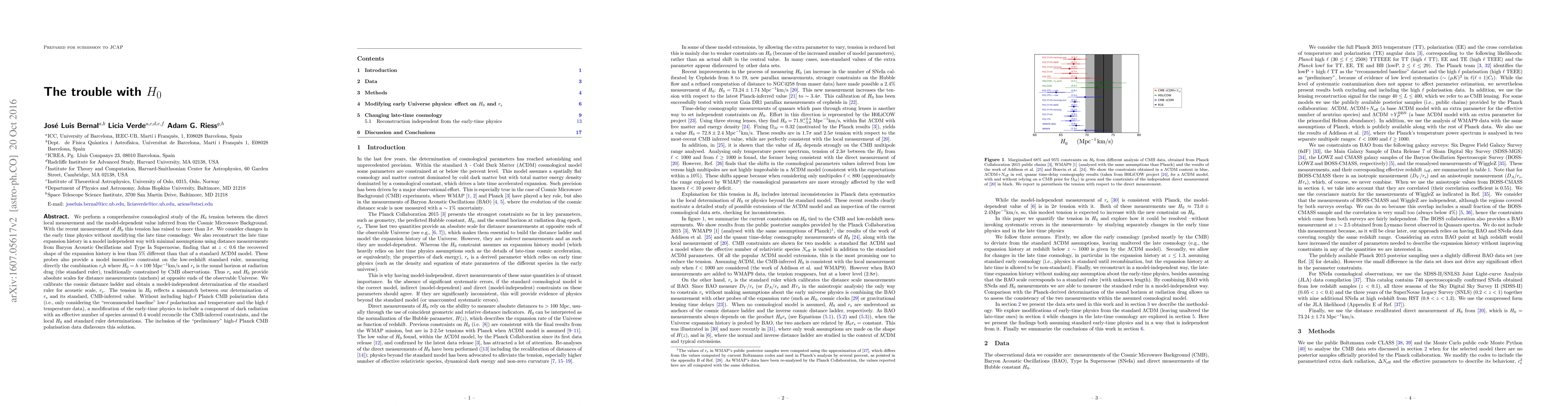 We perform a comprehensive cosmological study of the $H_0$ tension between the direct local measurement and the model-dependent value inferred from the Cosmic Microwave Background. With the recent measurement of $H_0$ this tension has raised to more than $3\sigma$. We consider changes in the early time physics without modifying the late time cosmology. We also reconstruct the late time expansion history in a model independent way with minimal assumptions using distances measures from Baryon Acoustic Oscillations and Type Ia Supernovae, finding that at $z<0.6$ the recovered shape of the expansion history is less than 5 % different than that of a standard LCDM model. These probes also provide a model insensitive constraint on the low-redshift standard ruler, measuring directly the combination $r_s h$ where $H_0=h \times 100$ km/s/Mpc and $r_s$ is the sound horizon at radiation drag (the standard ruler), traditionally constrained by CMB observations. Thus $r_s$ and $H_0$ provide absolute scales for distance measurements (anchors) at opposite ends of the observable Universe. We calibrate the cosmic distance ladder and obtain a model-independent determination of the standard ruler for acoustic scale, $r_s$. The tension in $H_0$ reflects a mismatch between our determination of $r_s$ and its standard, CMB-inferred value. Without including high-l Planck CMB polarization data (i.e., only considering the "recommended baseline" low-l polarisation and temperature and the high l temperature data), a modification of the early-time physics to include a component of dark radiation with an effective number of species around 0.4 would reconcile the CMB-inferred constraints, and the local $H_0$ and standard ruler determinations. The inclusion of the "preliminary" high-l Planck CMB polarisation data disfavours this solution.