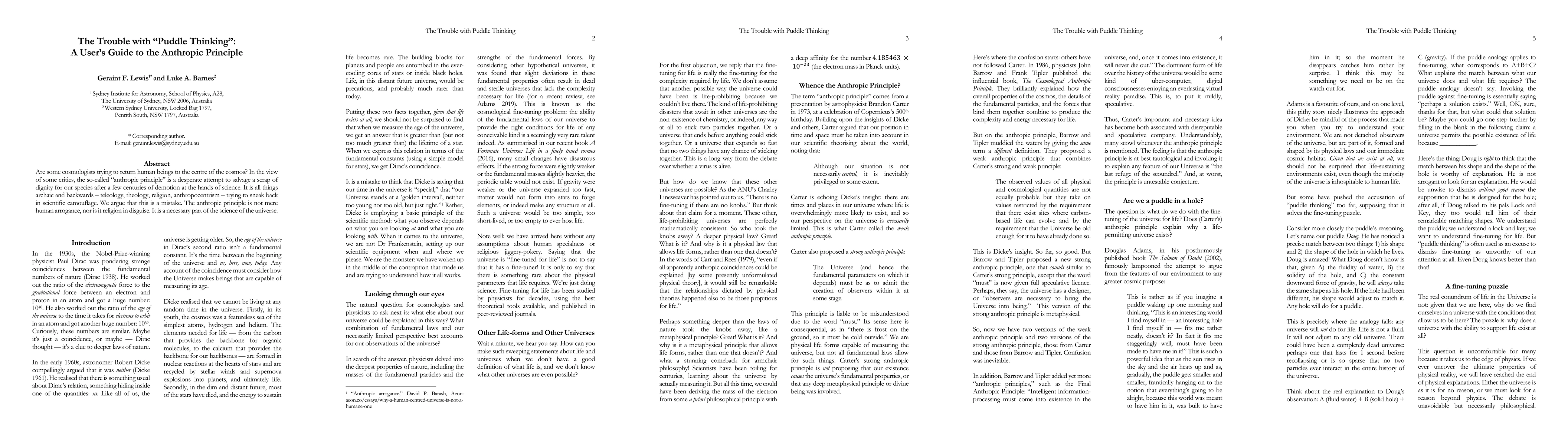 Are some cosmologists trying to return human beings to the centre of the cosmos? In the view of some critics, the so-called "anthropic principle" is a desperate attempt to salvage a scrap of dignity for our species after a few centuries of demotion at the hands of science. It is all things archaic and backwards - teleology, theology, religion, anthropocentrism - trying to sneak back in scientific camouflage. We argue that this is a mistake. The anthropic principle is not mere human arrogance, nor is it religion in disguise. It is a necessary part of the science of the universe.