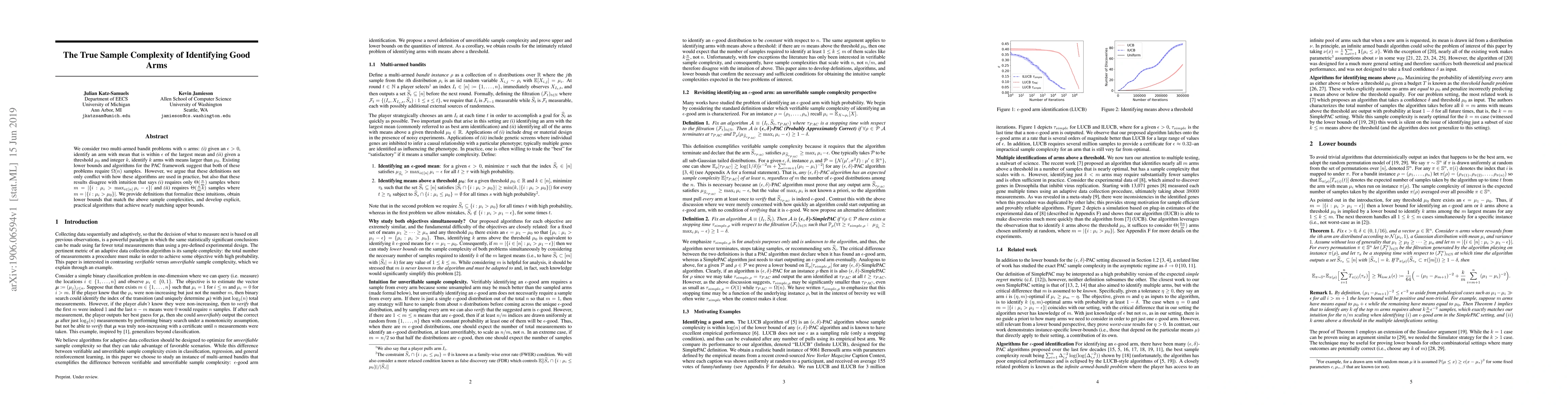 We consider two multi-armed bandit problems with $n$ arms: (i) given an $\epsilon > 0$, identify an arm with mean that is within $\epsilon$ of the largest mean and (ii) given a threshold $\mu_0$ and integer $k$, identify $k$ arms with means larger than $\mu_0$. Existing lower bounds and algorithms for the PAC framework suggest that both of these problems require $\Omega(n)$ samples. However, we argue that these definitions not only conflict with how these algorithms are used in practice, but also that these results disagree with intuition that says (i) requires only $\Theta(\frac{n}{m})$ samples where $m = |\{ i : \mu_i > \max_{i \in [n]} \mu_i - \epsilon\}|$ and (ii) requires $\Theta(\frac{n}{m}k)$ samples where $m = |\{ i : \mu_i > \mu_0 \}|$. We provide definitions that formalize these intuitions, obtain lower bounds that match the above sample complexities, and develop explicit, practical algorithms that achieve nearly matching upper bounds.