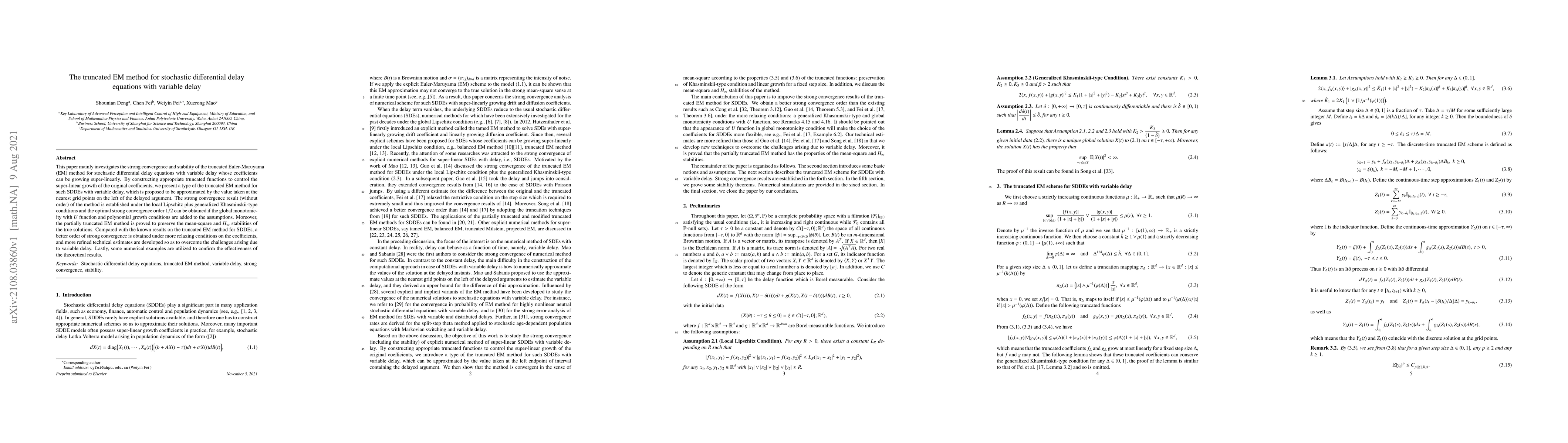 This paper develops a truncated Euler-Maruyama method for stochastic differential delay equations with variable delay, achieving strong convergence and stability under relaxed conditions. The method demonstrates optimal convergence order $1/2$ and preserves mean-square stability, outperforming existing truncated methods.