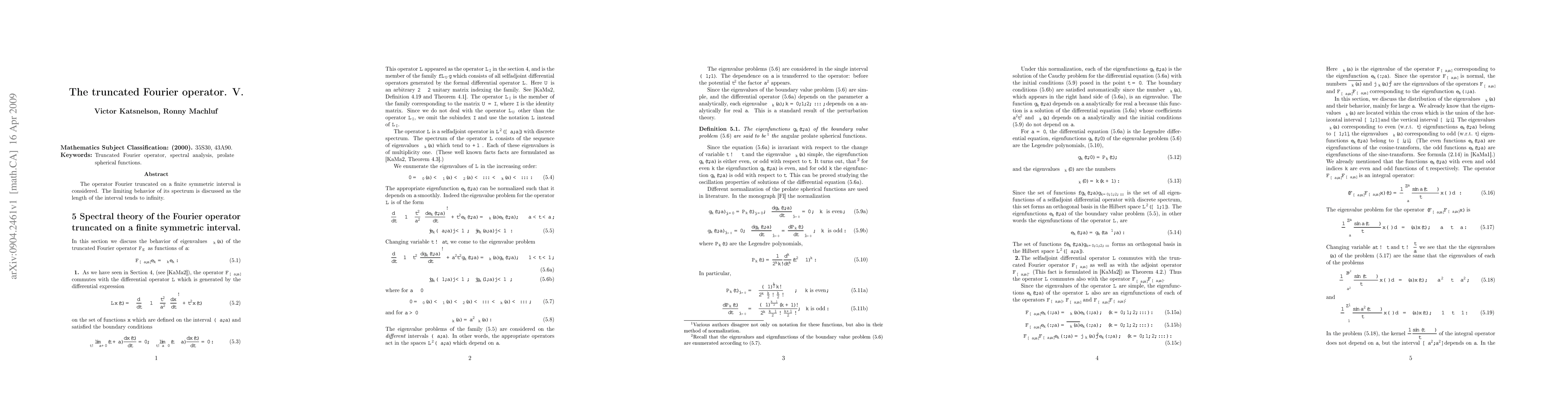 The Fourier operator truncated on a finite symmetric interval is considered. The limiting behavior of its spectrum is discussed as the length of the interval tends to infinity.