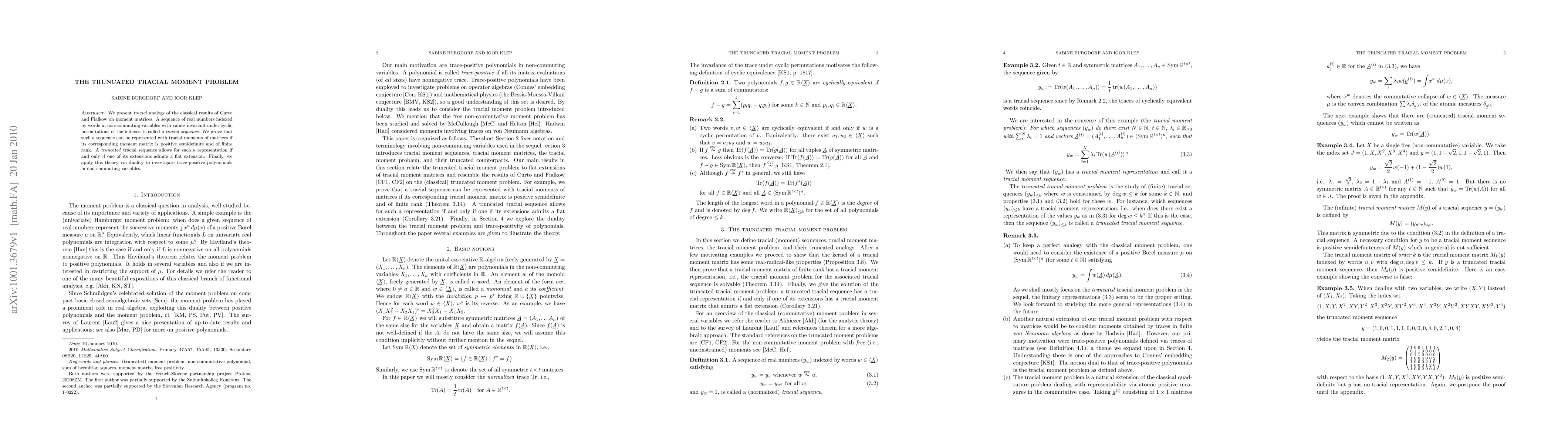 This paper establishes tracial analogs of classical moment matrix results, showing that a tracial sequence can be represented by tracial moments if its moment matrix is positive semidefinite and of finite rank. It also explores the conditions under which truncated tracial sequences can be represented, and applies the theory to study trace-positive polynomials in non-commuting variables.