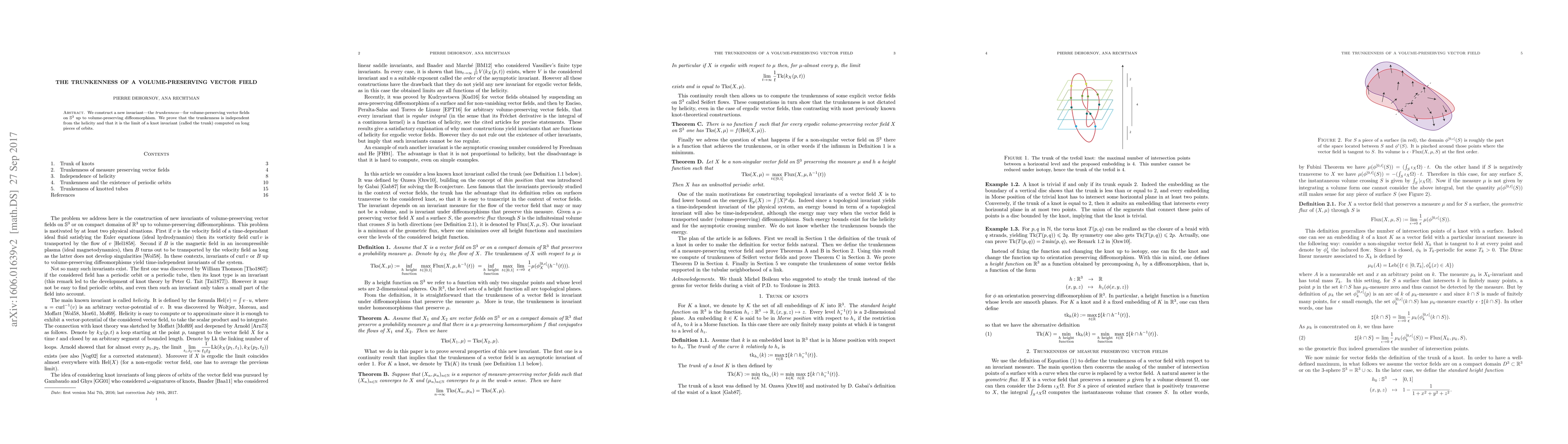 Researchers developed a new invariant called trunkenness to measure volume-preserving vector fields on S^3, finding it's independent of helicity and relates to a knot invariant.