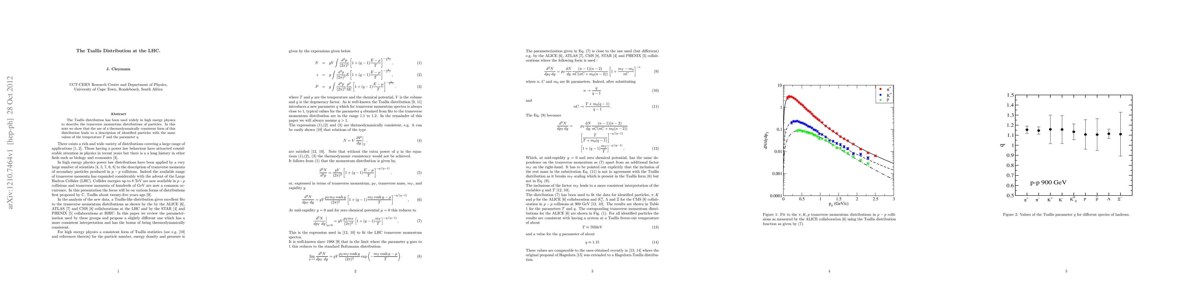 The Tsallis distribution has been used widely in high energy physics to describe the transverse momnetum distributions of particles. In this note we show that the use of a thermodynamically consistent form of this distribution leads to a description of identified particles with the same values of the temperature $T$ and the parameter $q$.