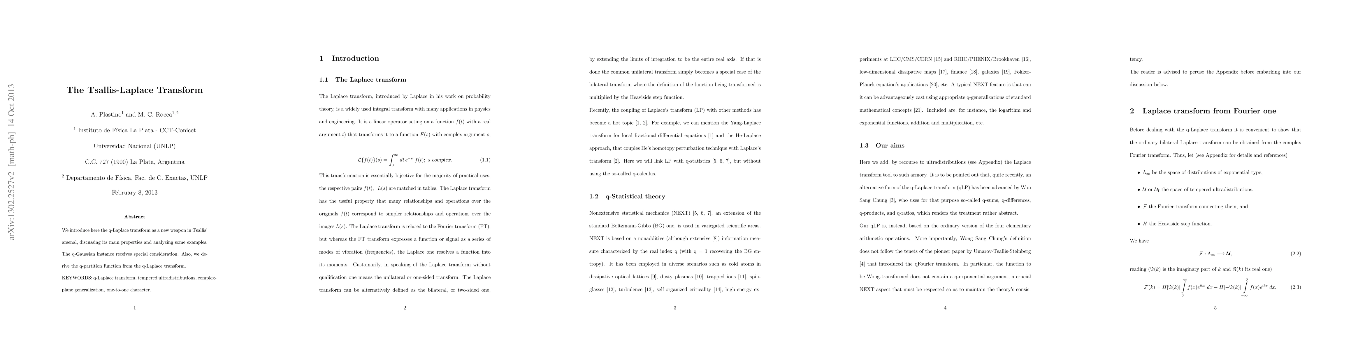 The paper introduces the q-Laplace transform, a new tool from Tsallis's theoretical framework, and explores its properties and applications, with a focus on the q-Gaussian instance and derivation of the q-partition function.