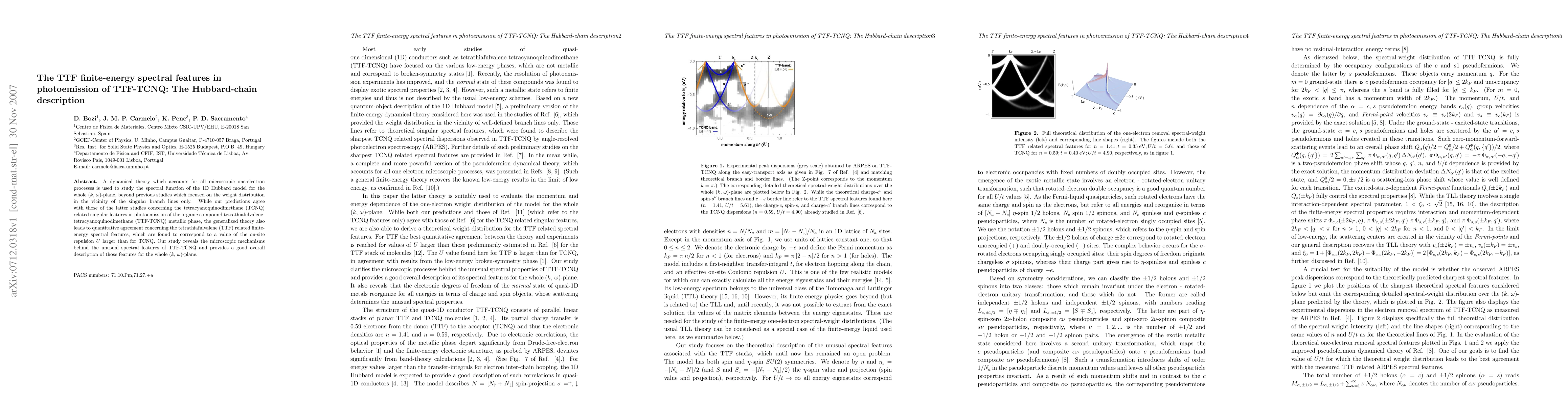 This paper uses a comprehensive dynamical theory to analyze the spectral function of the 1D Hubbard model for the entire $(k, \omega)$-plane, revealing the microscopic mechanisms behind the unique spectral features in the photoemission of TTF-TCNQ. The study finds that TTF-related features correspond to a larger on-site repulsion $U$ compared to TCNQ, providing a detailed explanation of these features.