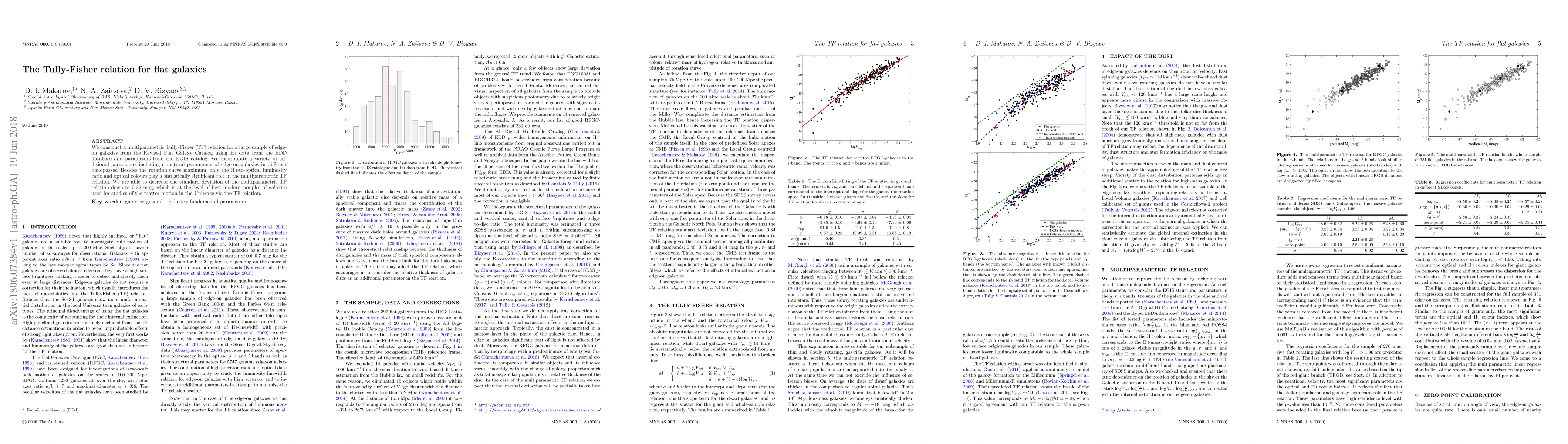 We construct a multiparametric Tully-Fisher (TF) relation for a large sample of edge-on galaxies from the Revised Flat Galaxy Catalog using HI data from the EDD database and parameters from the EGIS catalog. We incorporate a variety of additional parameters including structural parameters of edge-on galaxies in different bandpasses. Besides the rotation curve maximum, only the HI-to-optical luminosity ratio and optical colours play a statistically significant role in the multiparametric TF relation. We are able to decrease the standard deviation of the multiparametric TF relation down to 0.32 mag, which is at the level of best modern samples of galaxies used for studies of the matter motion in the Universe via the TF-relation.