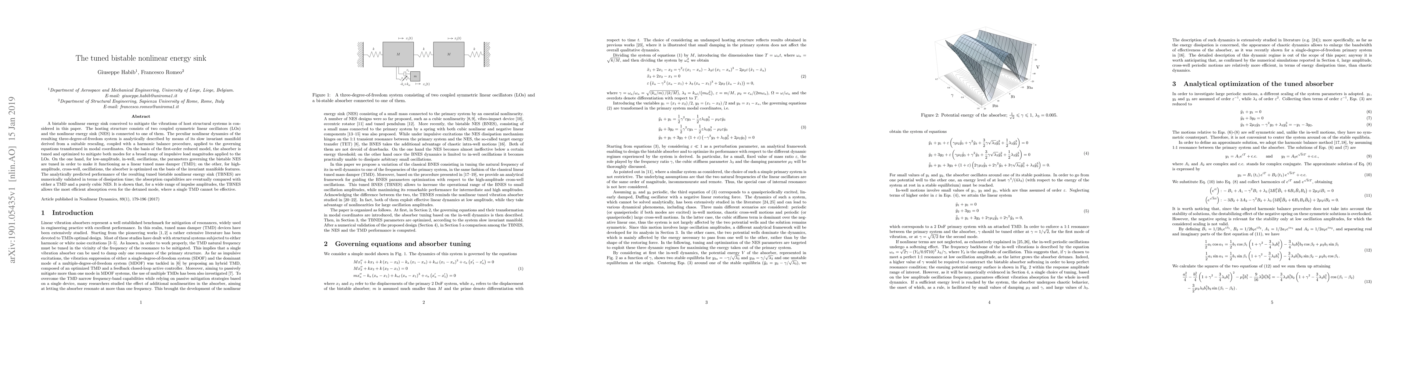 A bistable nonlinear energy sink conceived to mitigate the vibrations of host structural systems is considered in this paper. The hosting structure consists of two coupled symmetric linear oscillators (LOs) and the nonlinear energy sink (NES) is connected to one of them. The peculiar nonlinear dynamics of the resulting three-degree-of-freedom system is analytically described by means of its slow invariant manifold derived from a suitable rescaling, coupled with a harmonic balance procedure, applied to the governing equations transformed in modal coordinates. On the basis of the first-order reduced model, the absorber is tuned and optimized to mitigate both modes for a broad range of impulsive load magnitudes applied to the LOs. On the one hand, for low-amplitude, in-well, oscillations, the parameters governing the bistable NES are tuned in order to make it functioning as a linear tuned mass damper (TMD); on the other, for high-amplitude, cross-well, oscillations, the absorber is optimized on the basis of the invariant manifolds features. The analytically predicted performance of the resulting tuned bistable nonlinear energy sink (TBNES) are numerically validated in terms of dissipation time; the absorption capabilities are eventually compared with either a TMD and a purely cubic NES. It is shown that, for a wide range of impulse amplitudes, the TBNES allows the most efficient absorption even for the detuned mode, where a single TMD cannot be effective.