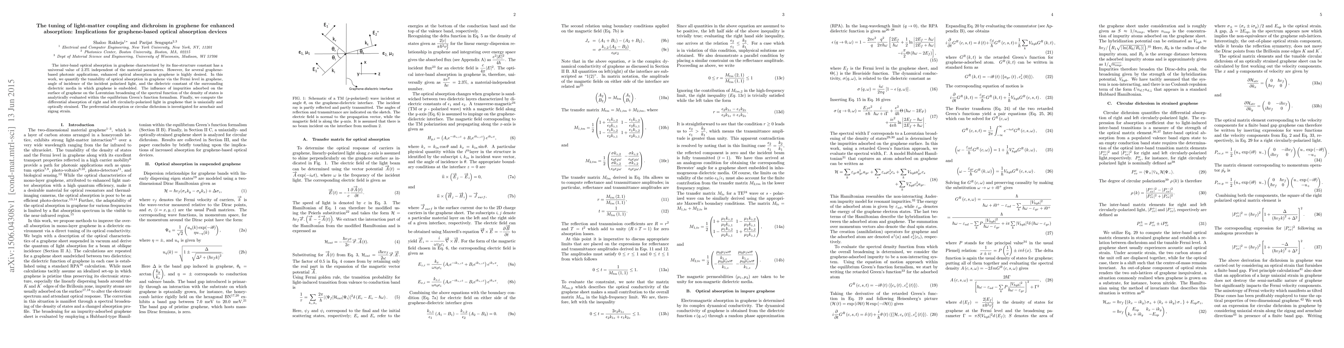 This paper investigates methods to enhance optical absorption in graphene through tuning its Fermi level, angle of incidence, and surrounding dielectric media, and examines the effect of surface impurities and strain on dichroism. The results suggest potential for improved graphene-based optical devices.