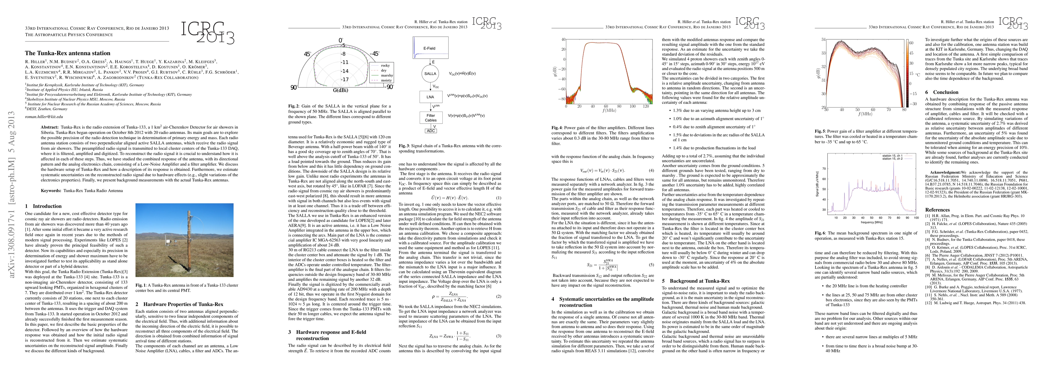 The Tunka-Rex antenna station extends Tunka-133's air-Cherenkov detection with radio antennas to determine the precision of radio detection in air shower analysis. The study details the hardware setup and systematic uncertainties affecting the radio signal reconstruction.