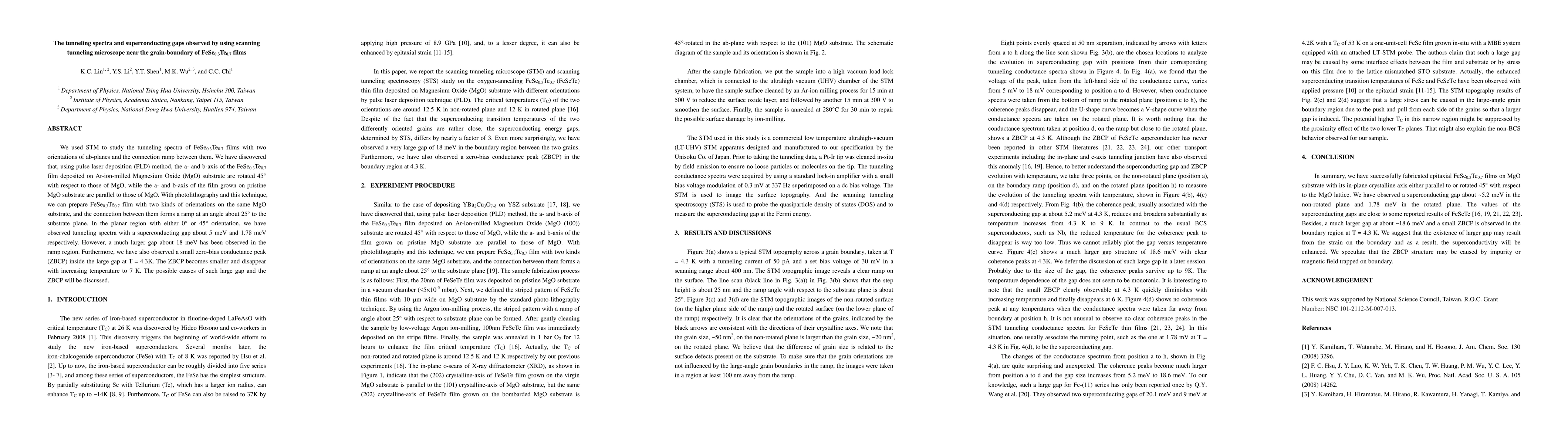 Researchers used a scanning tunneling microscope to study FeSe0.3Te0.7 films with different orientations, observing a superconducting gap of 18 meV in the grain boundary region, which is significantly larger than the gaps found in planar regions.