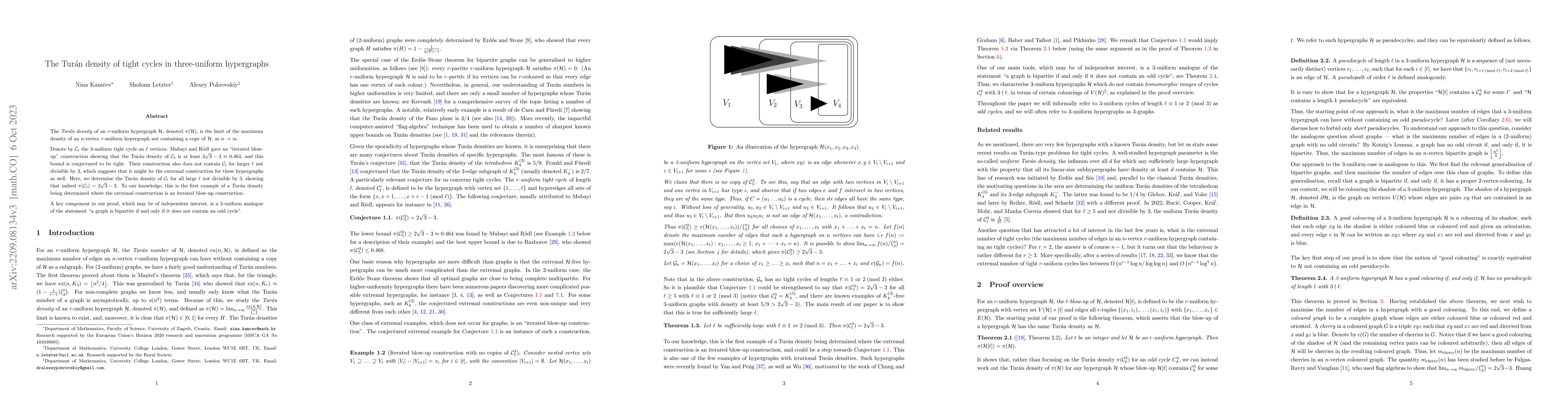 This paper determines the Turán density for large, non-multiple-of-three vertex tight cycles in three-uniform hypergraphs, proving it equals $2\sqrt{3} - 3$. It also introduces a significant $3$-uniform hypergraph analogue of the bipartite graph odd cycle theorem.