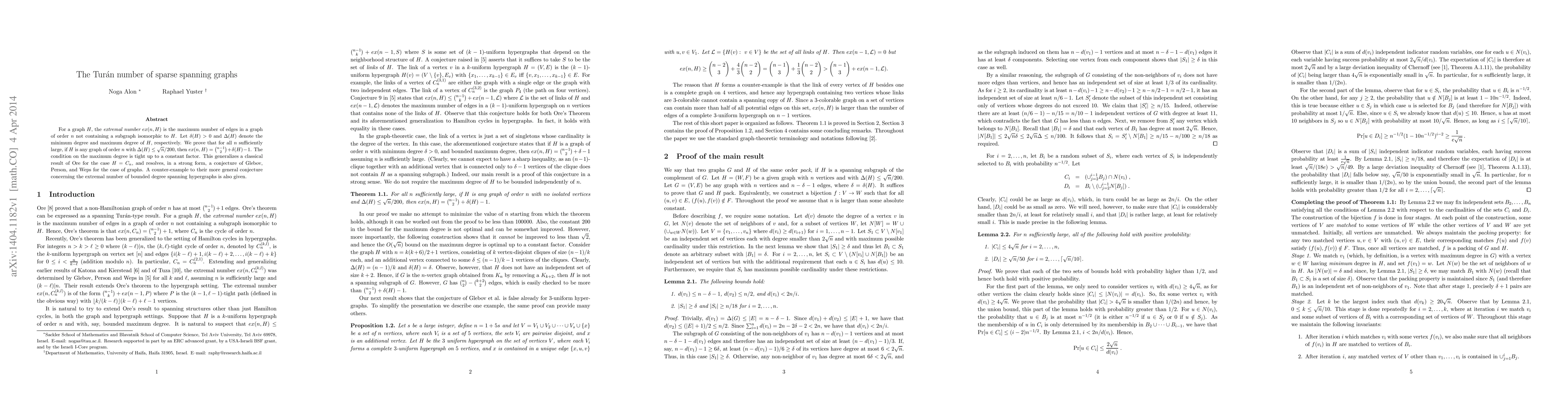 For a graph $H$, the {\em extremal number} $ex(n,H)$ is the maximum number of edges in a graph of order $n$ not containing a subgraph isomorphic to $H$. Let $\delta(H)>0$ and $\Delta(H)$ denote the minimum degree and maximum degree of $H$, respectively. We prove that for all $n$ sufficiently large, if $H$ is any graph of order $n$ with $\Delta(H) \le \sqrt{n}/200$, then $ex(n,H)={{n-1} \choose 2}+\delta(H)-1$. The condition on the maximum degree is tight up to a constant factor. This generalizes a classical result of Ore for the case $H=C_n$, and resolves, in a strong form, a conjecture of Glebov, Person, and Weps for the case of graphs. A counter-example to their more general conjecture concerning the extremal number of bounded degree spanning hypergraphs is also given.