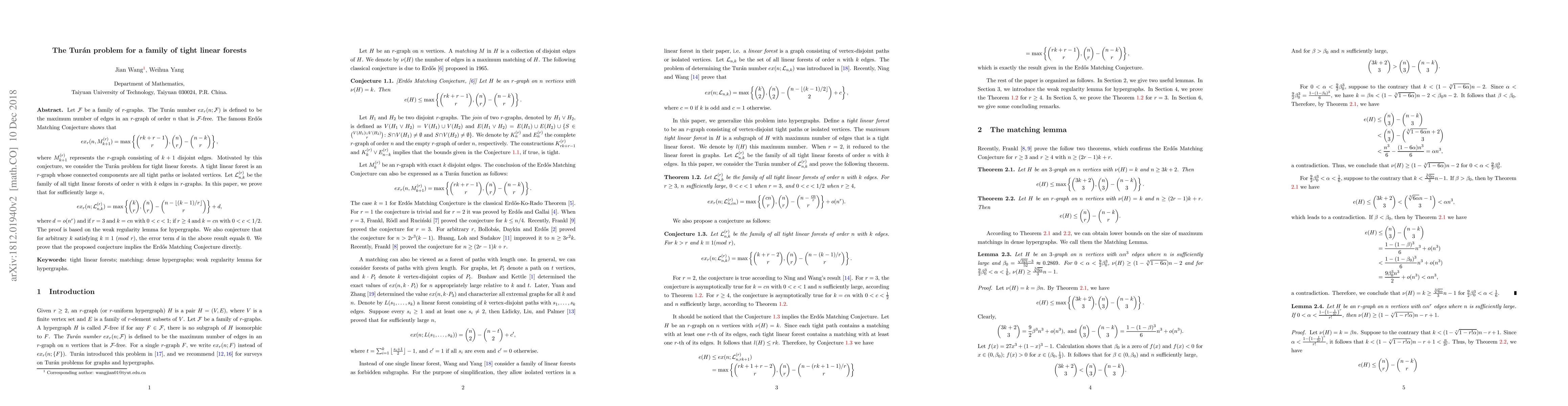 forests. A tight linear forest is an $r$-graph whose connected components are