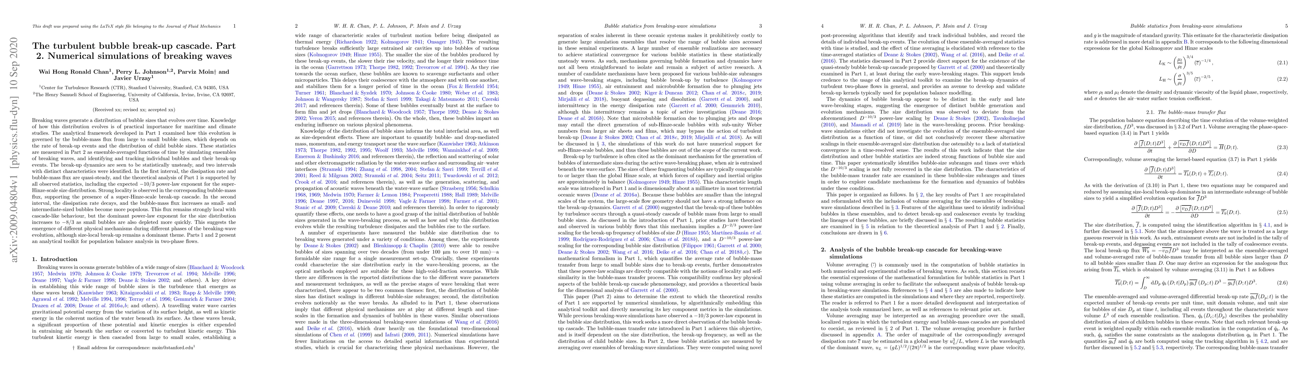 Researchers simulated breaking waves to understand how bubble sizes evolve over time, identifying two distinct phases with different physical mechanisms at play.