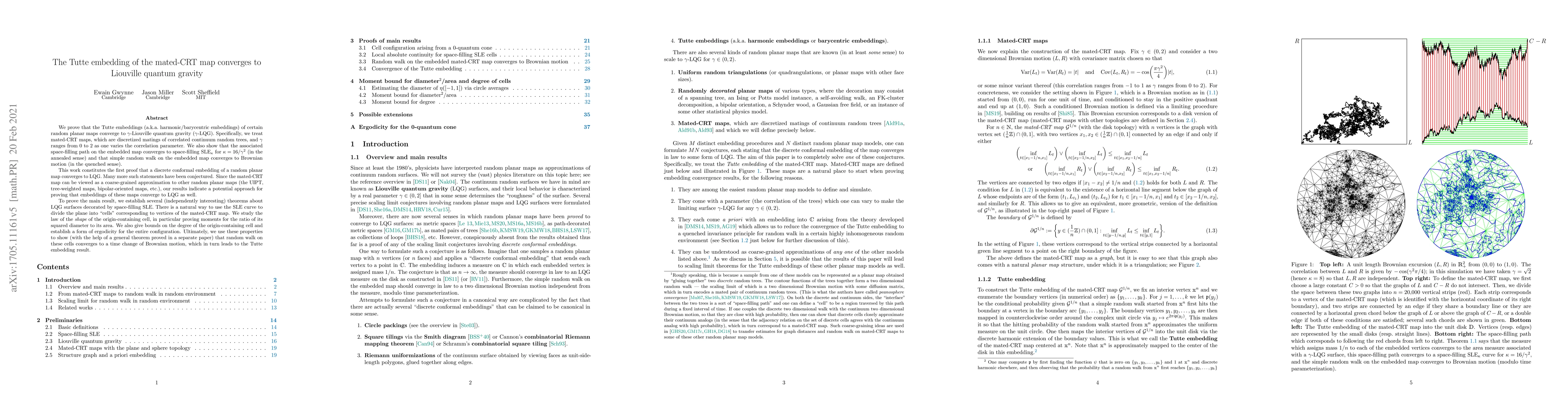 This paper proves that Tutte embeddings of mated-CRT maps converge to $\gamma$-Liouville quantum gravity ($\gamma$-LQG) as the correlation parameter varies. It also shows that associated space-filling paths converge to SLE$_{\kappa}$ and simple random walk on the embedded map converges to Brownian motion, establishing a foundational result for the convergence of discrete conformal embeddings to LQG.