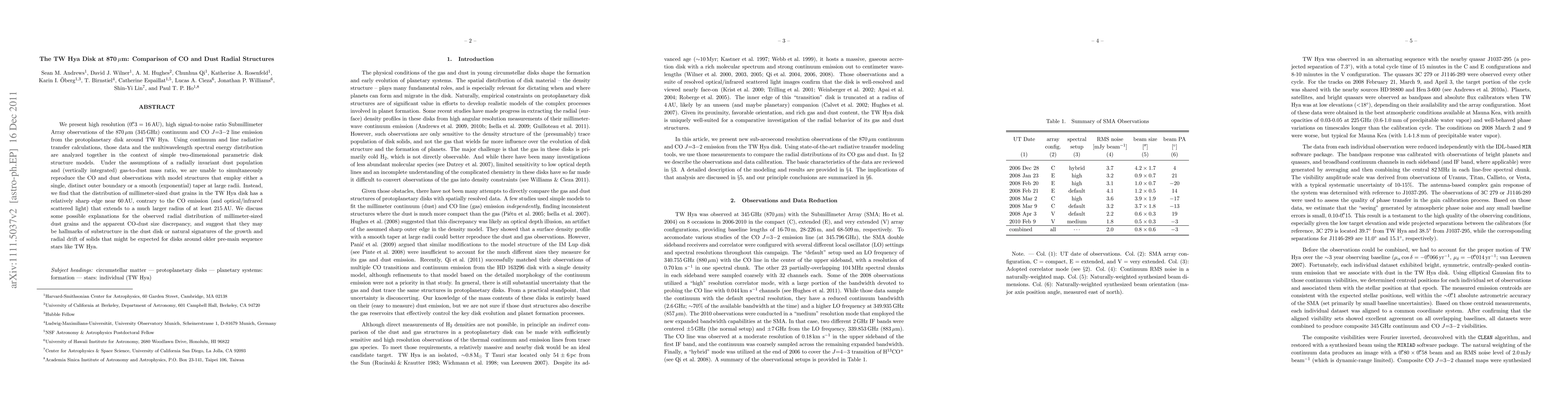This study uses high-resolution observations of the TW Hya disk to compare the radial structures of CO and dust at 870 microns. The findings reveal a sharp edge in the distribution of millimeter-sized dust grains near 60 AU, contrasting with the CO emission extending to at least 215 AU, suggesting possible substructures or the growth and drift of solids in the disk.