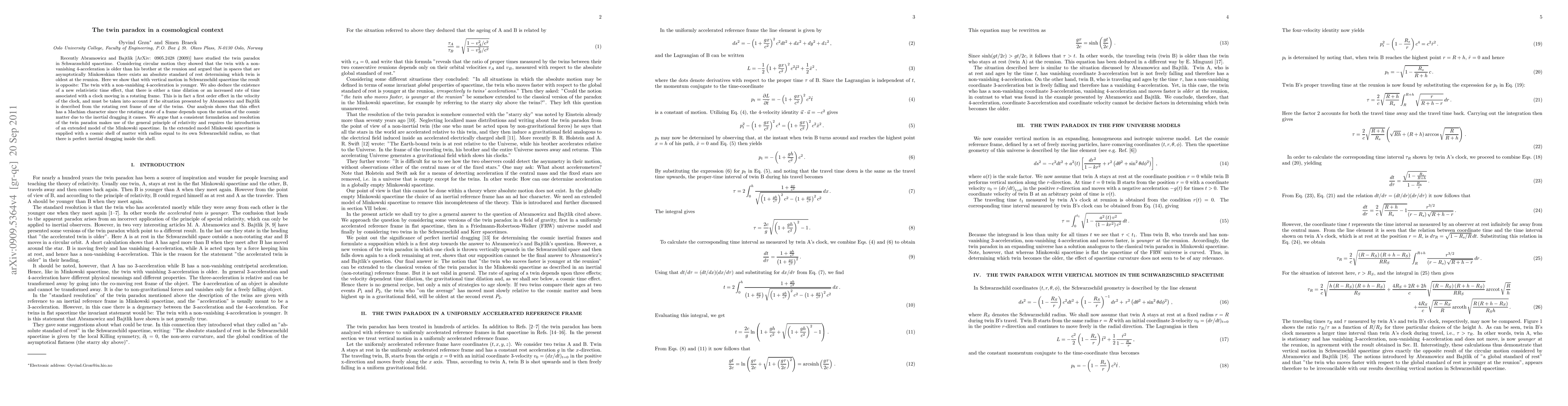 Recently Abramowicz and Bajtlik [ArXiv: 0905.2428 (2009)] have studied the twin paradox in Schwarzschild spacetime. Considering circular motion they showed that the twin with a non-vanishing 4-acceleration is older than his brother at the reunion and argued that in spaces that are asymptotically Minkowskian there exists an absolute standard of rest determining which twin is oldest at the reunion. Here we show that with vertical motion in Schwarzschild spacetime the result is opposite: The twin with a non-vanishing 4-acceleration is younger. We also deduce the existence of a new relativistic time effect, that there is either a time dilation or an increased rate of time associated with a clock moving in a rotating frame. This is in fact a first order effect in the velocity of the clock, and must be taken into account if the situation presented by Abramowicz and Bajtlik is described from the rotating rest frame of one of the twins. Our analysis shows that this effect has a Machian character since the rotating state of a frame depends upon the motion of the cosmic matter due to the inertial dragging it causes. We argue that a consistent formulation and resolution of the twin paradox makes use of the general principle of relativity and requires the introduction of an extended model of the Minkowski spacetime. In the extended model Minkowski spacetime is supplied with a cosmic shell of matter with radius equal to its own Schwarzschild radius, so that there is perfect inertial dragging inside the shell.