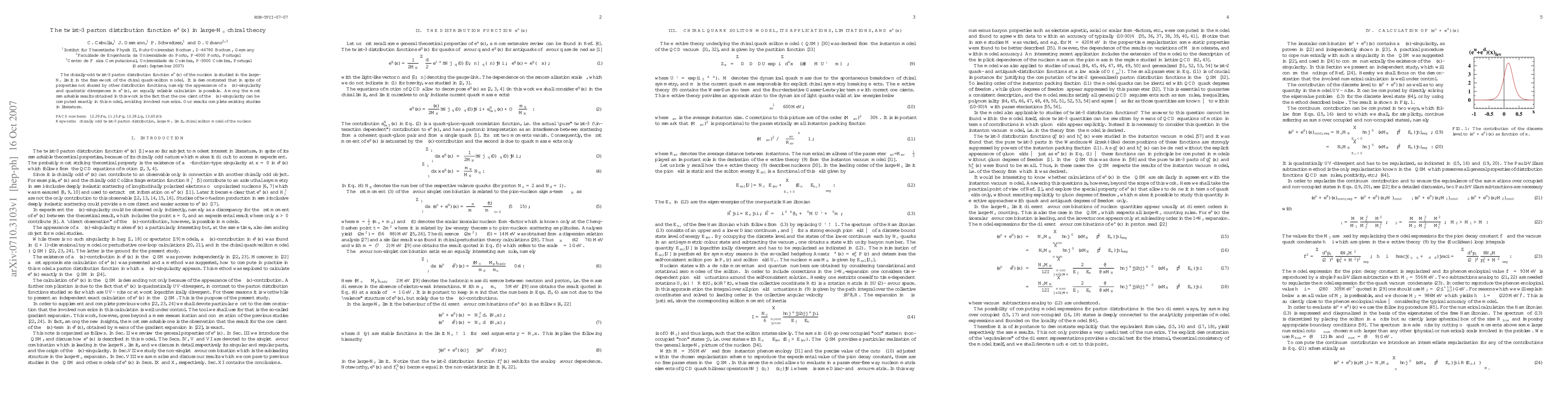Researchers in large-Nc chiral theory calculate a reliable calculation of the twist-3 parton distribution function e(x), including its delta(x)-singularity and quadratic divergences.