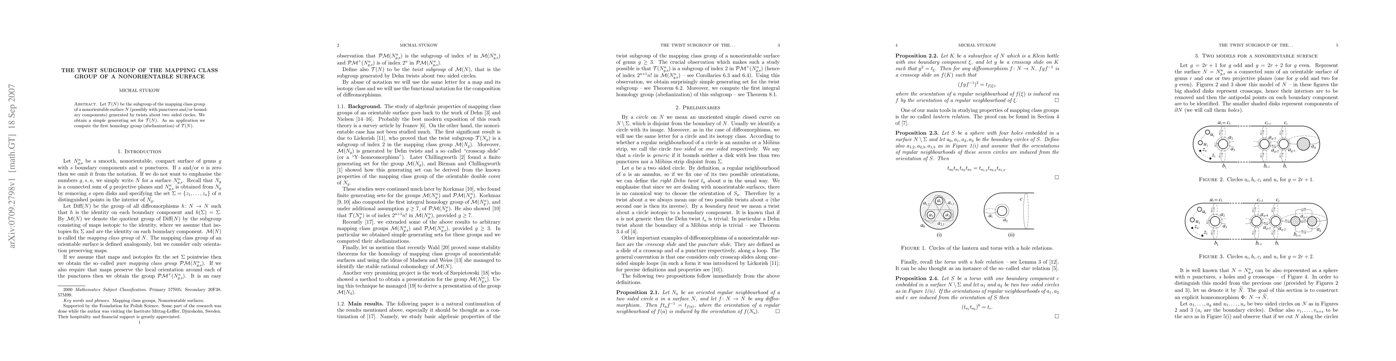 Let T(N) be the subgroup of the mapping class group of a nonorientable surface N (possibly with punctures and/or boundary components) generated by twists about two-sided circles. We obtain a simple generating set for T(N). As an application we compute the first homology group (abelianization) of T(N).