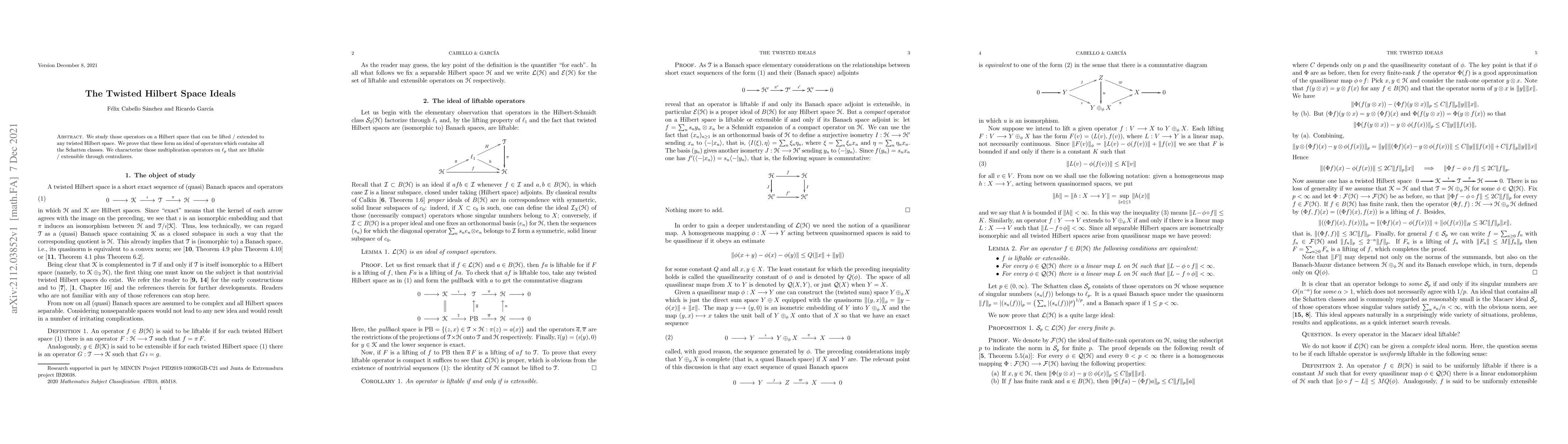 Summary: This paper investigates operators on Hilbert space that extend to any twisted Hilbert space, proving they form an ideal containing all Schatten classes. It also characterizes multiplication operators on $\ell_p$ that can be extended via centralizers.