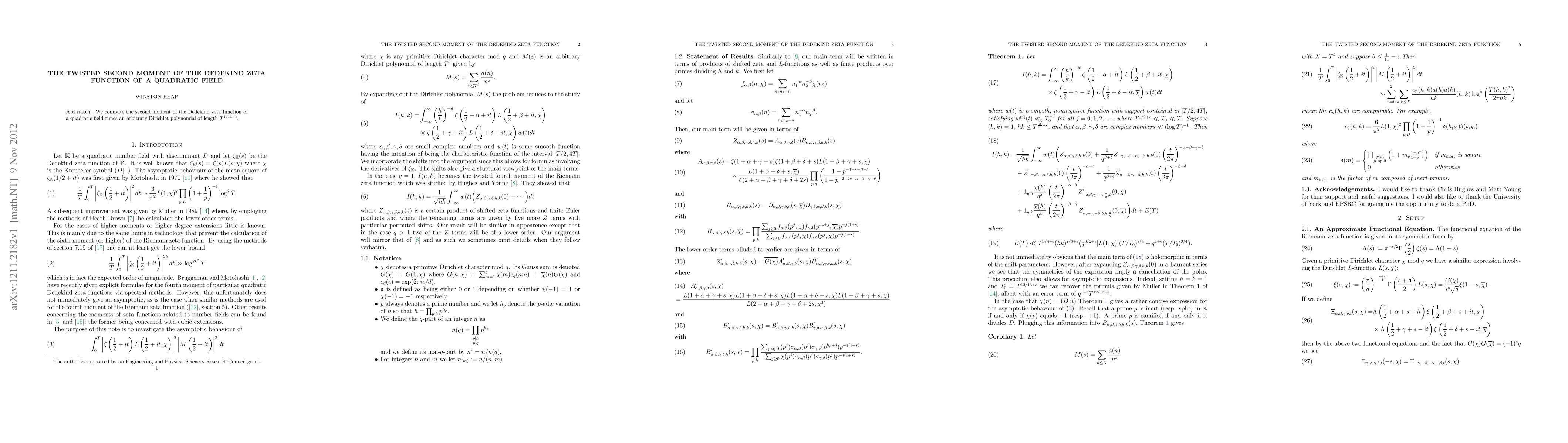 We compute the second moment of the Dedekind zeta function of a quadratic field times an arbitrary Dirichlet polynomial of length $T^{1/11-\epsilon}$.