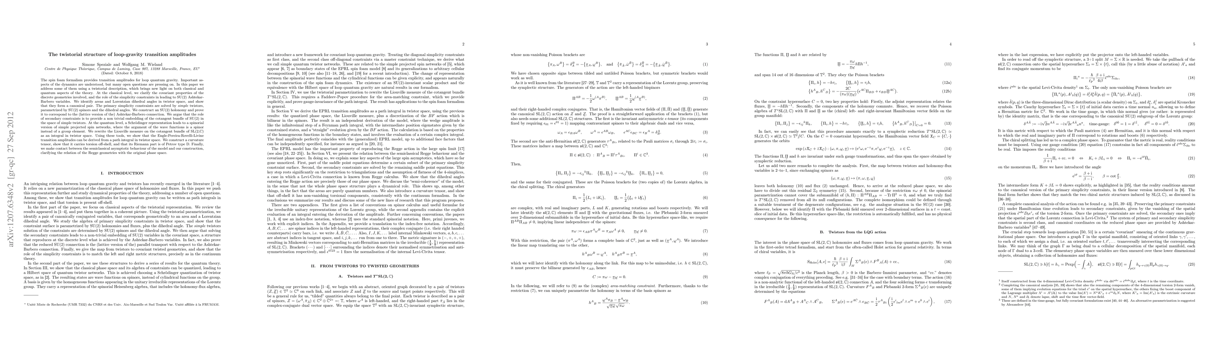 The spin foam formalism provides transition amplitudes for loop quantum gravity. Important aspects of the dynamics are understood, but many open questions are pressing on. In this paper we address some of them using a twistorial description, which brings new light on both classical and quantum aspects of the theory. At the classical level, we clarify the covariant properties of the discrete geometries involved, and the role of the simplicity constraints in leading to SU(2) Ashtekar-Barbero variables. We identify areas and Lorentzian dihedral angles in twistor space, and show that they form a canonical pair. The primary simplicity constraints are solved by simple twistors, parametrized by SU(2) spinors and the dihedral angles. We construct an SU(2) holonomy and prove it to correspond to the (lattice version of the) Ashtekar-Barbero connection. We argue that the role of secondary constraints is to provide a non trivial embedding of the cotangent bundle of SU(2) in the space of simple twistors. At the quantum level, a Schroedinger representation leads to a spinorial version of simple projected spin networks, where the argument of the wave functions is a spinor instead of a group element. We rewrite the Liouville measure on the cotangent bundle of SL(2,C) as an integral in twistor space. Using these tools, we show that the Engle-Pereira-Rovelli-Livine transition amplitudes can be derived from a path integral in twistor space. We construct a curvature tensor, show that it carries torsion off-shell, and that its Riemann part is of Petrov type D. Finally, we make contact between the semiclassical asymptotic behaviour of the model and our construction, clarifying the relation of the Regge geometries with the original phase space.