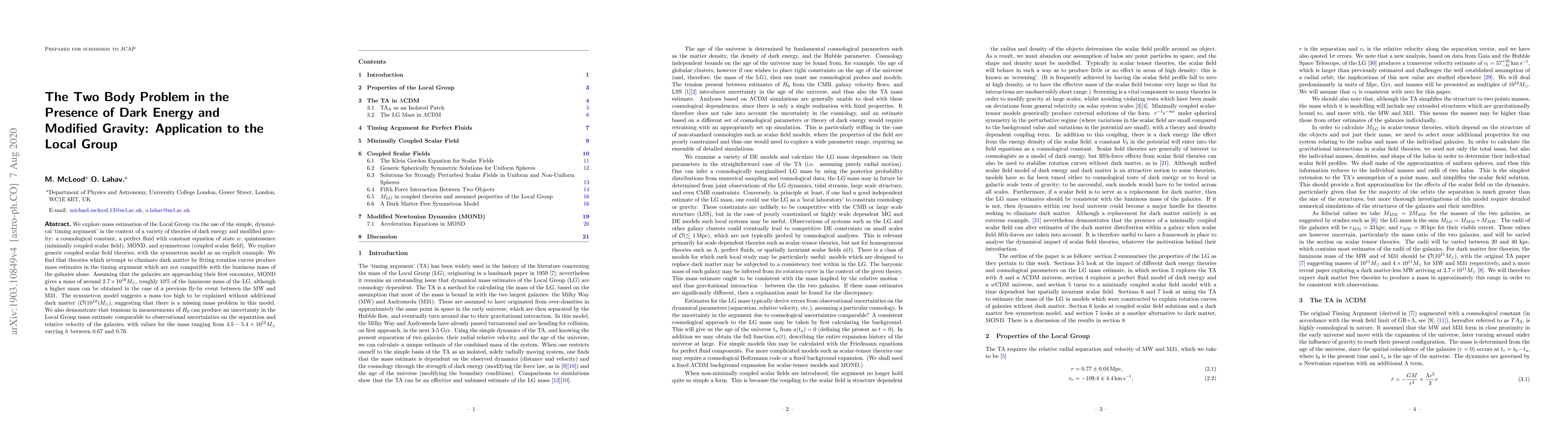 A study explores how different theories of dark energy and modified gravity affect mass estimates of the Local Group of galaxies, finding that some models require additional dark matter to explain observations.