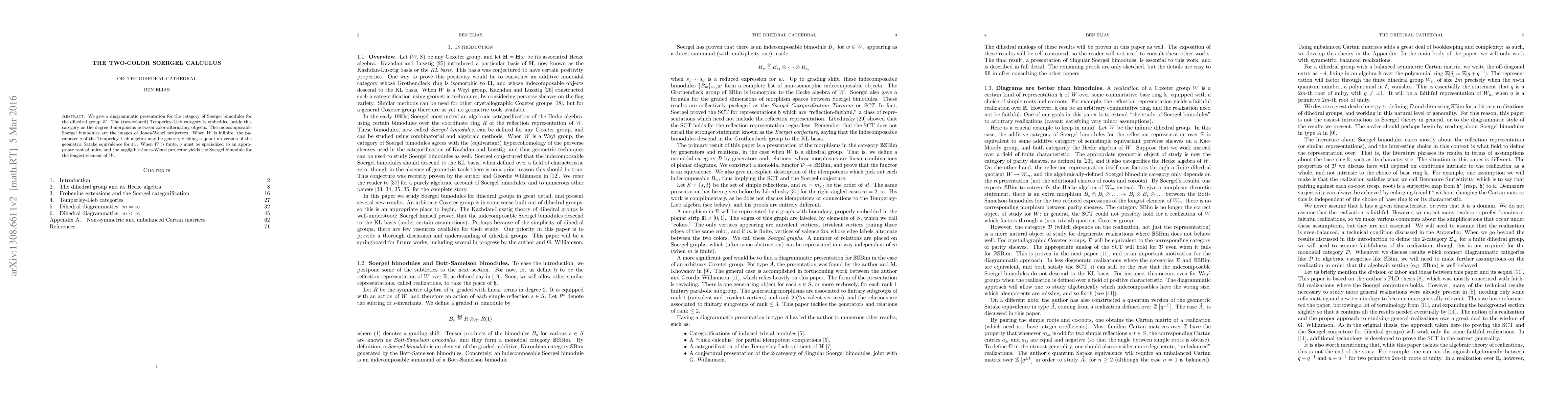 The paper presents a diagrammatic framework for the category of Soergel bimodules for the dihedral group, embedding the Temperley-Lieb category within it. It connects indecomposable Soergel bimodules to Jones-Wenzl projectors and explores their quantum and finite versions.