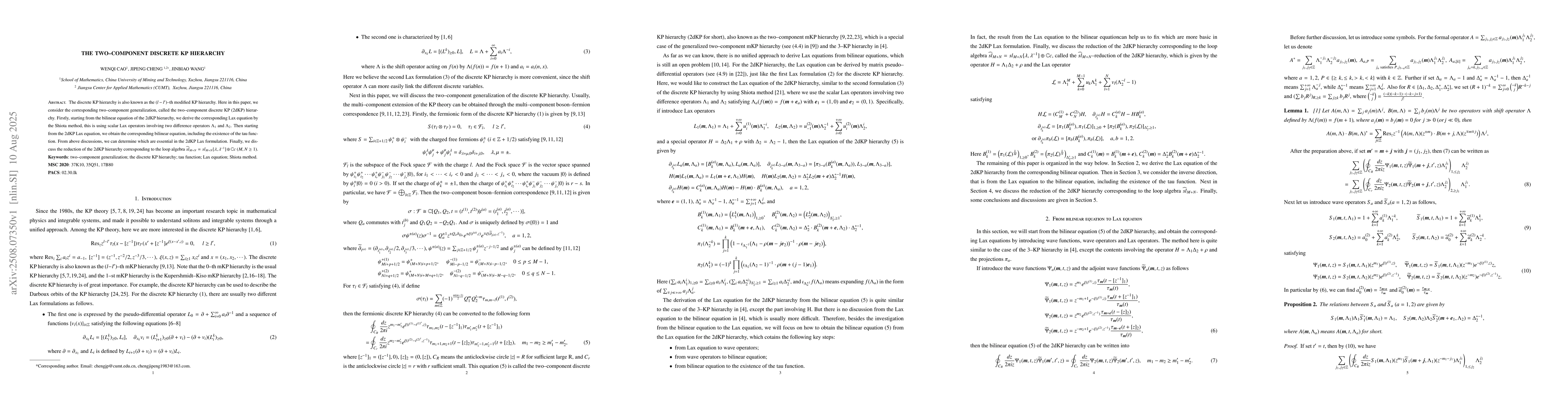 The discrete KP hierarchy is also known as the $(l-l')$--th modified KP hierarchy. Here in this paper, we consider the corresponding two--component generalization, called the two--component discrete KP (2dKP) hierarchy. Firstly, starting from the bilinear equation of the 2dKP hierarchy, we derive the corresponding Lax equation by the Shiota method, this is using scalar Lax operators involving two difference operators $\Lambda_1$ and $\Lambda_2$. Then starting from the 2dKP Lax equation, we obtain the corresponding bilinear equation, including the existence of the tau function. From above discussions, we can determine which are essential in the 2dKP Lax formulation. Finally, we discuss the reduction of the 2dKP hierarchy corresponding to the loop algebra $\widehat{sl}_{M+N}=sl_{M+N}[\lambda,\lambda^{-1}]\oplus\mathbb{C}c \ (M,N\geq1)$.