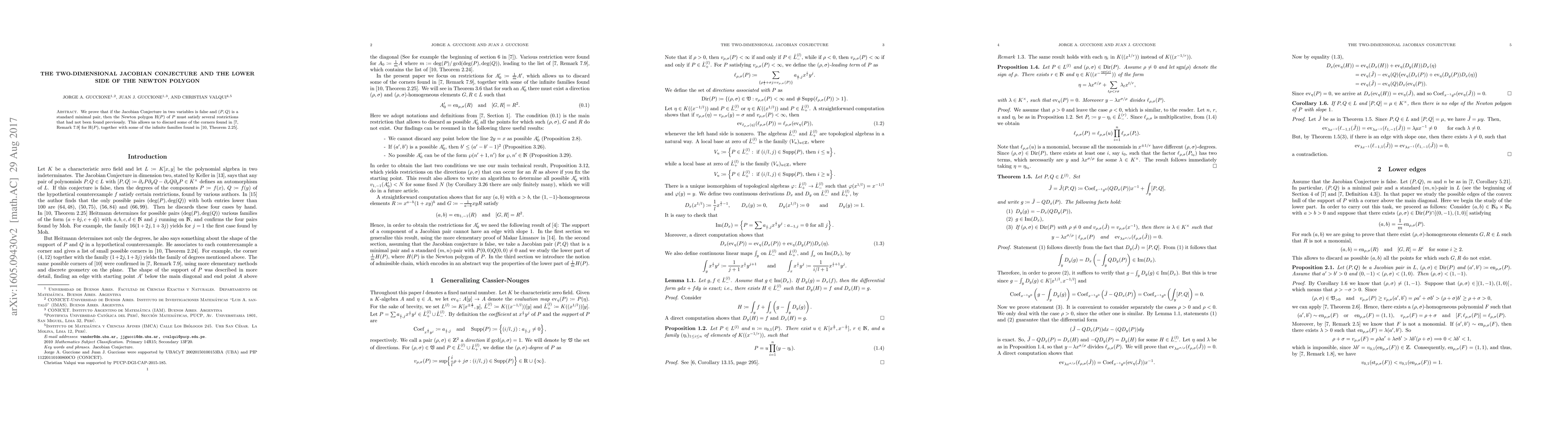 We prove that if the Jacobian Conjecture in two variables is false and (P,Q) is a standard minimal pair, then the Newton polygon HH(P) of P must satisfy several restrictions that had not been found previously. This allows us to discard some of the corners found in [GGV, Remark 7.14] for HH(P), together with some of the infinite families found in [H, Theorem~2.25]