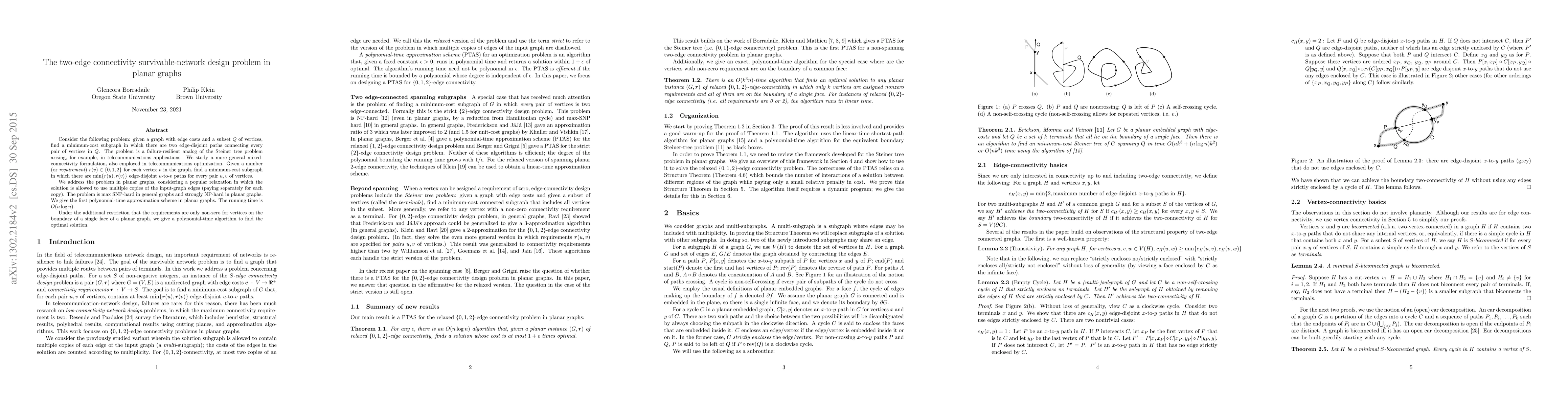 Researchers developed a polynomial-time algorithm to design a minimum-cost subgraph in planar graphs that ensures two edge-disjoint paths connecting every pair of vertices with specific requirements, addressing a variant of the Steiner tree problem.