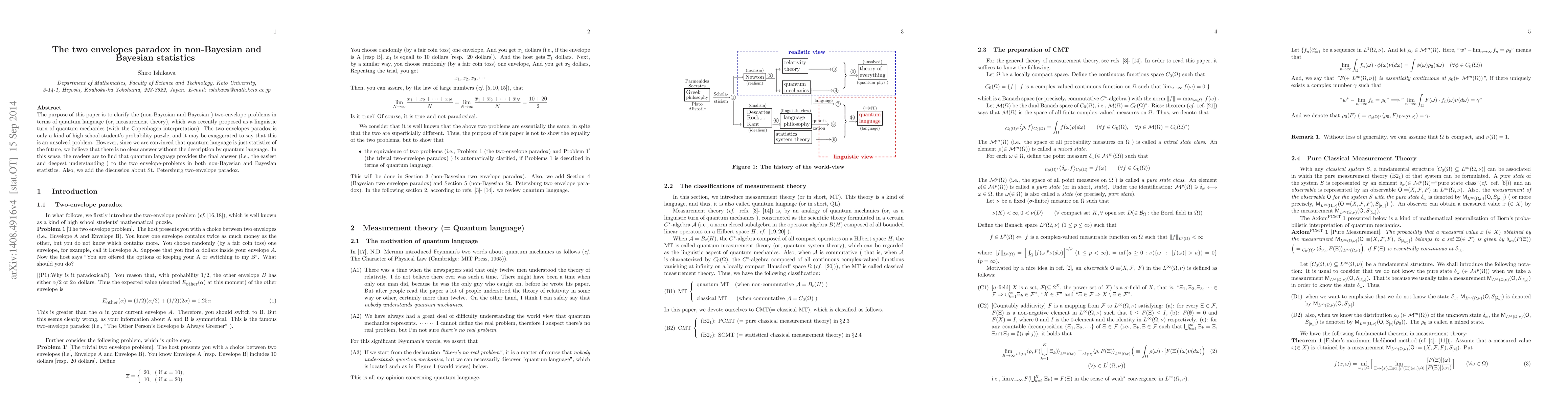 The purpose of this paper is to clarify the (non-Bayesian and Bayesian) two-envelope problems in terms of quantum language (or, measurement theory), which was recently proposed as a linguistic turn of quantum mechanics (with the Copenhagen interpretation). The two envelopes paradox is only a kind of high school student's probability puzzle, and it may be exaggerated to say that this is an unsolved problem. However, since we are convinced that quantum language is just statistics of the future, we believe that there is no clear answer without the description by quantum language. In this sense, the readers are to find that quantum language provides the final answer (i.e., the easiest and deepest understanding) to the two envelope-problems in both non-Bayesian and Bayesian statistics. Also, we add the discussion about St. Petersburg two-envelope paradox.