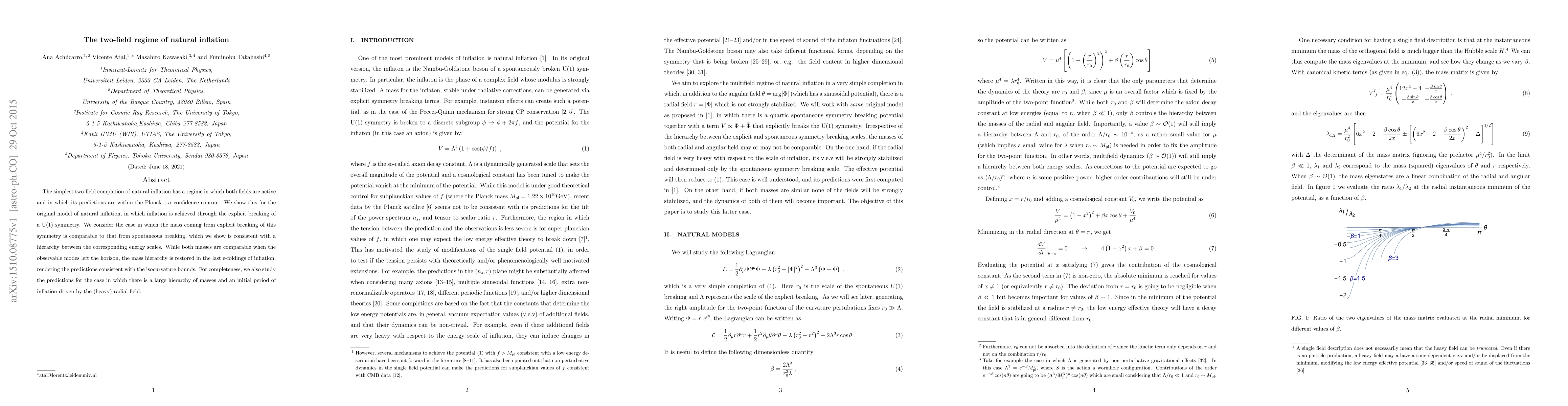 The simplest two-field completion of natural inflation has a regime in which both fields are active and in which its predictions are within the Planck 1-$\sigma$ confidence contour. We show this for the original model of natural inflation, in which inflation is achieved through the explicit breaking of a U(1) symmetry. We consider the case in which the mass coming from explicit breaking of this symmetry is comparable to that from spontaneous breaking, which we show is consistent with a hierarchy between the corresponding energy scales. While both masses are comparable when the observable modes left the horizon, the mass hierarchy is restored in the last e-foldings of inflation, rendering the predictions consistent with the isocurvature bounds. For completeness, we also study the predictions for the case in which there is a large hierarchy of masses and an initial period of inflation driven by the (heavy) radial field.