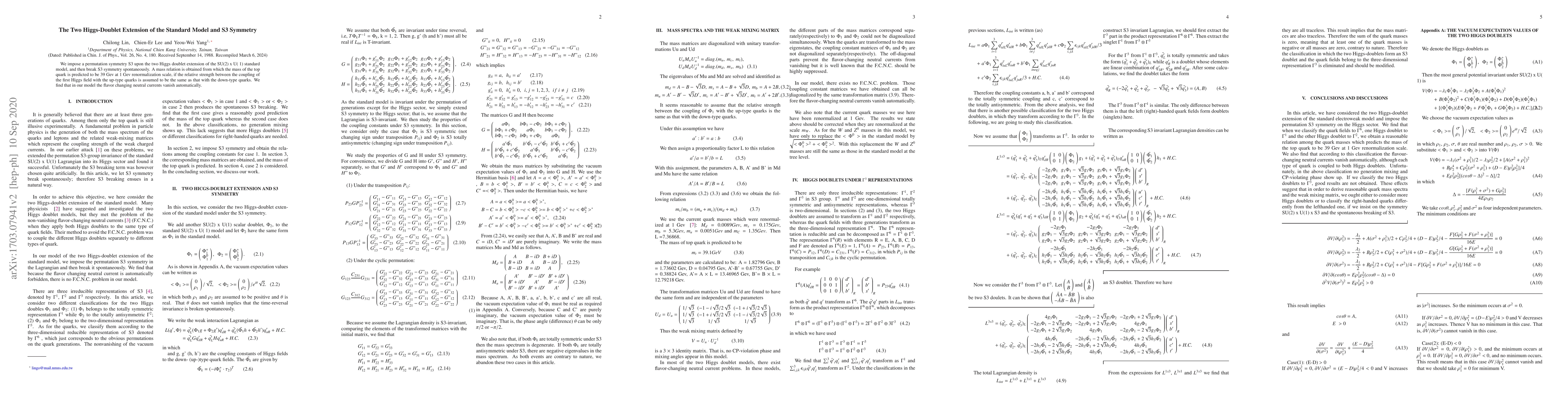 The paper presents a detailed analysis of the S3 symmetry imposed on the two Higgs doublet model, deriving mass relations and predicting the top quark mass, while ensuring flavor-changing neutral currents vanish.