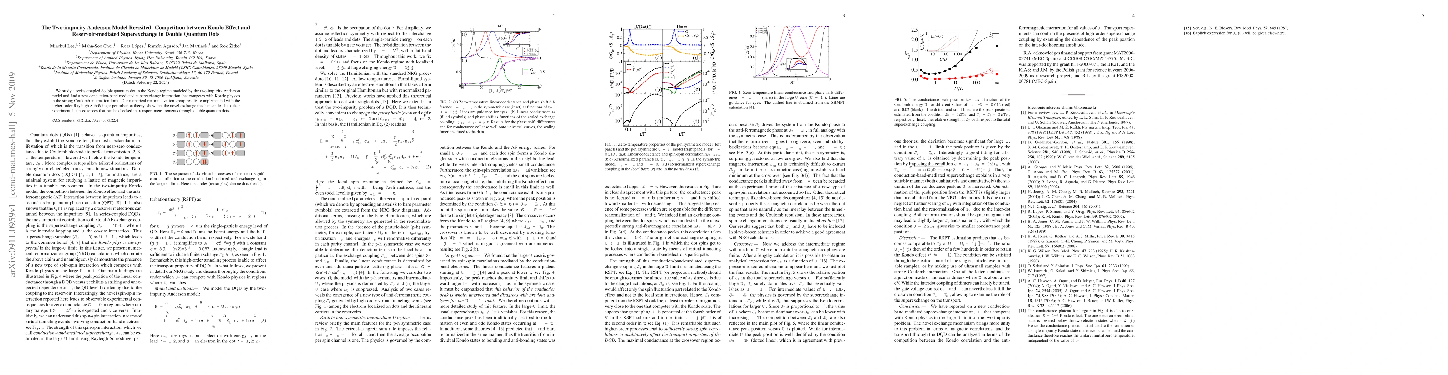 This paper revisits the two-impurity Anderson model to explore competition between Kondo effect and conduction-band mediated superexchange in double quantum dots. The study reveals a new superexchange interaction that can be detected in transport measurements, offering potential experimental signatures.