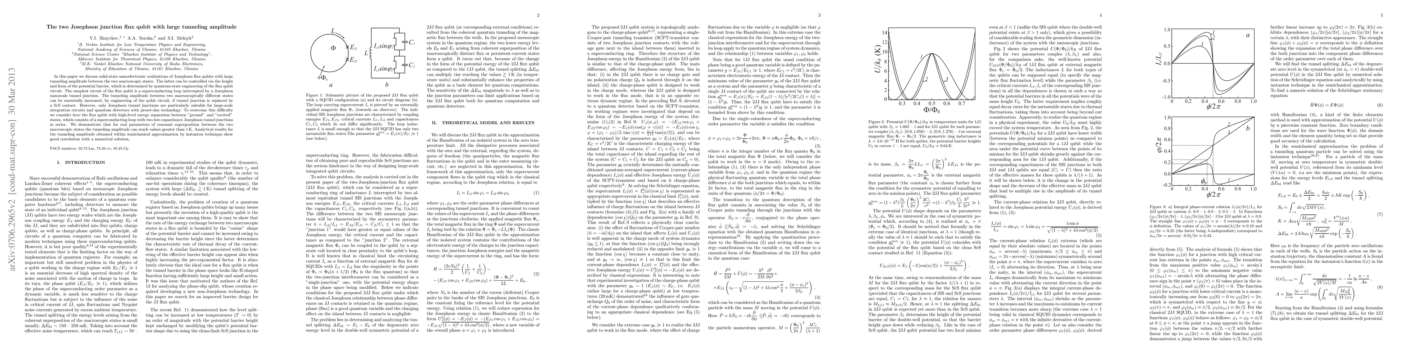 In this paper we discuss solid-state nanoelectronic realizations of Josephson flux qubits with large tunneling amplitude between the two macroscopic states. The latter can be controlled via the height and wells form of the potential barrier, which is determined by quantum-state engineering of the flux qubit circuit. The simplest circuit of the flux qubit is a superconducting loop interrupted by a Josephson nanoscale tunnel junction. The tunneling amplitude between two macroscopically different states can be essentially increased, by engineering of the qubit circuit, if tunnel junction is replaced by a ScS contact. However, only Josephson tunnel junctions are particularly suitable for large-scale integration circuits and quantum detectors with preset-day technology. To overcome this difficulty we consider here the flux qubit with high-level energy separation between "ground" and "excited" states, which consists of a superconducting loop with two low-capacitance Josephson tunnel junctions in series. We demonstrate that for real parameters of resonant superposition between the two macroscopic states the tunneling amplitude can reach values greater than 1K. Analytical results for the tunneling amplitude obtained within semiclassical approximation by instanton technique show good correlation with a numerical solution.